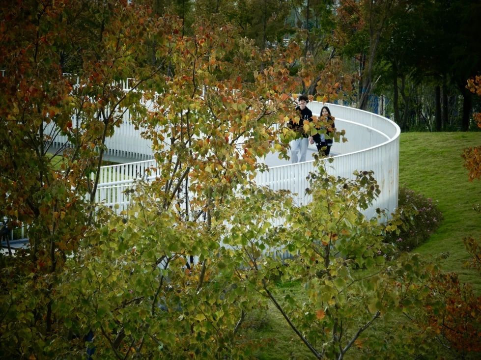 现在,这里的色叶树为公园披上了一层金黄的外衣,儿童游乐场旁的超大沙坑成为了孩子们探险的乐园。空中绿道、沉水栈道等特色设施,让家长们在陪伴中尽享亲子时光的温馨与幸福。