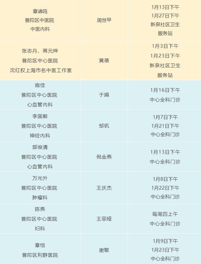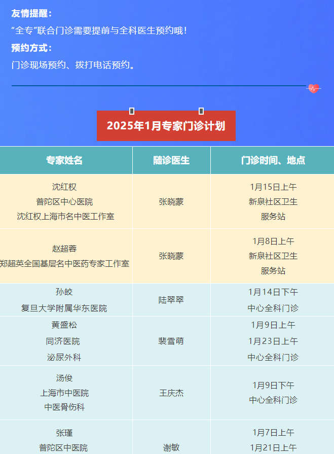 “家门口”就能看名医!普陀2025年1月专家门诊安排来啦 2025年01月02日