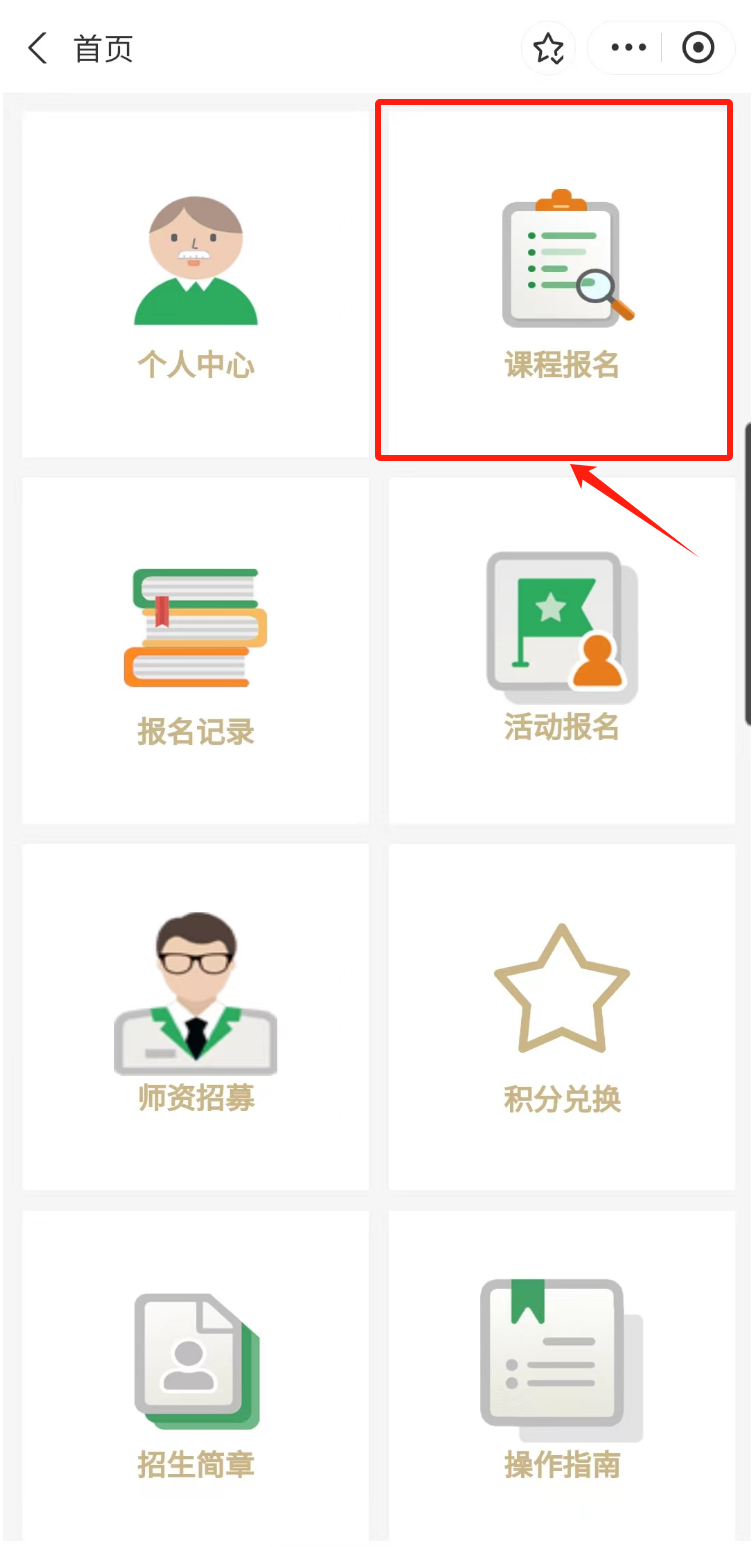 2、选择“课程报名”,进入报名页面。市民可根据标签筛选机构、查询课程,也可直接通过底部搜索框快速查询班级或授课老师。
