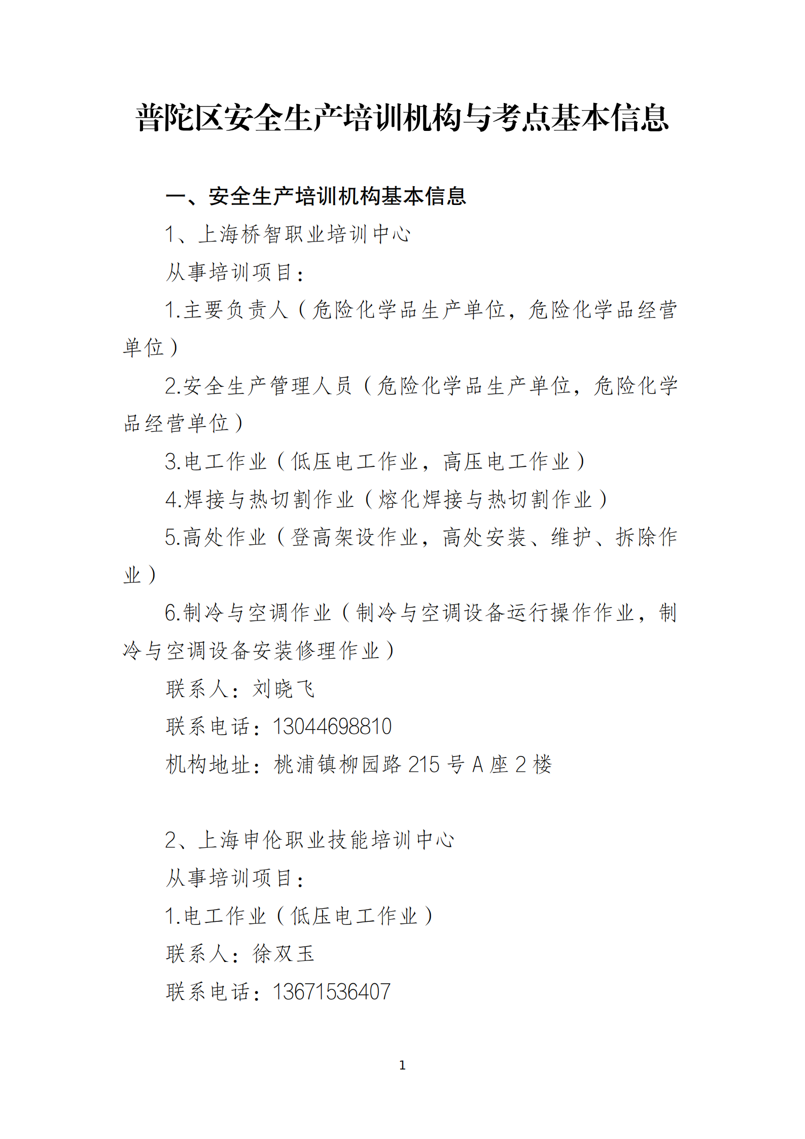 此外,普陀区目前有安全生产培训机构5家、考点2家,快来看看具体信息吧~