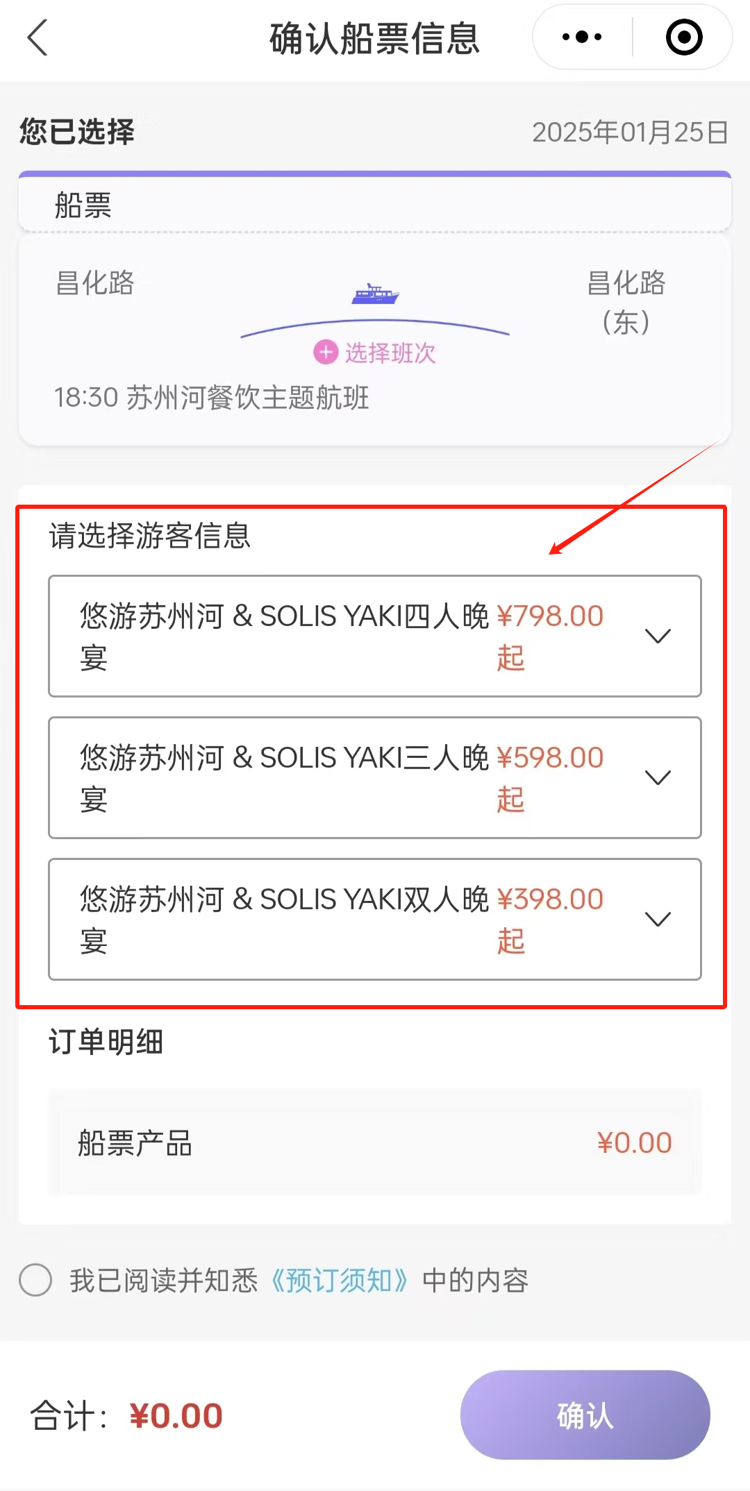 第三步:选择“苏州河餐饮主题航班”即可购买船票~