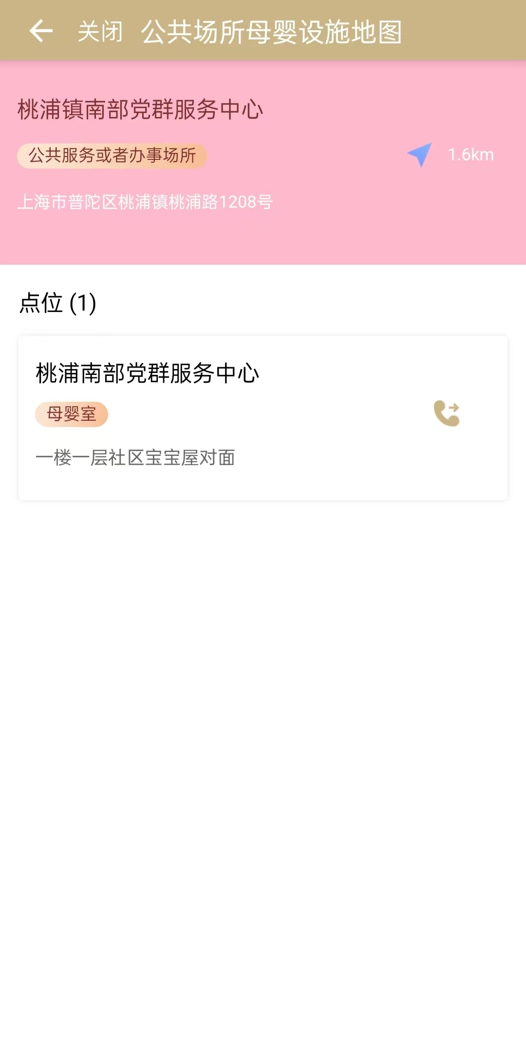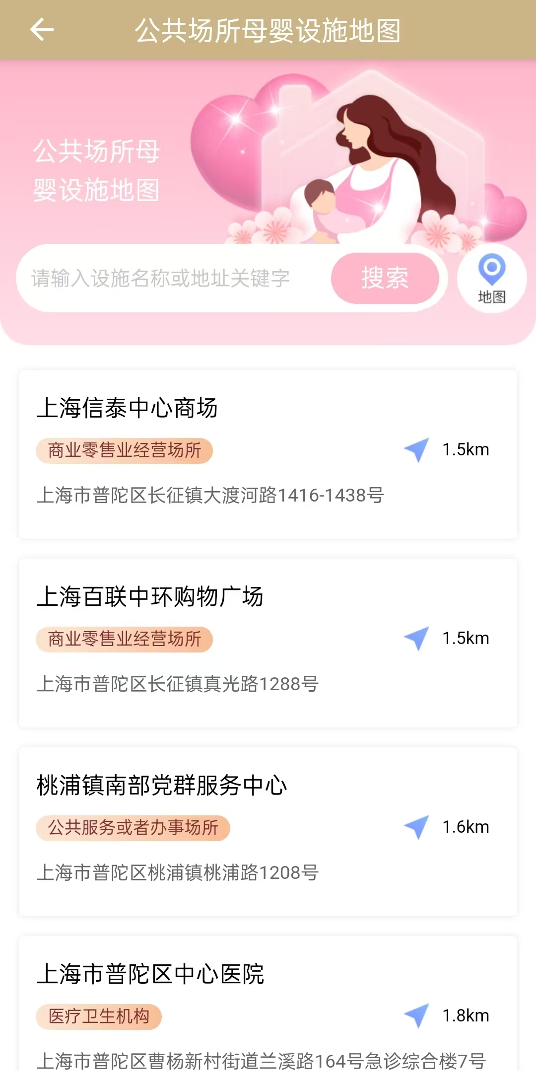 按照提示打开定位后,即可查看普陀的公共场所母婴设施~
