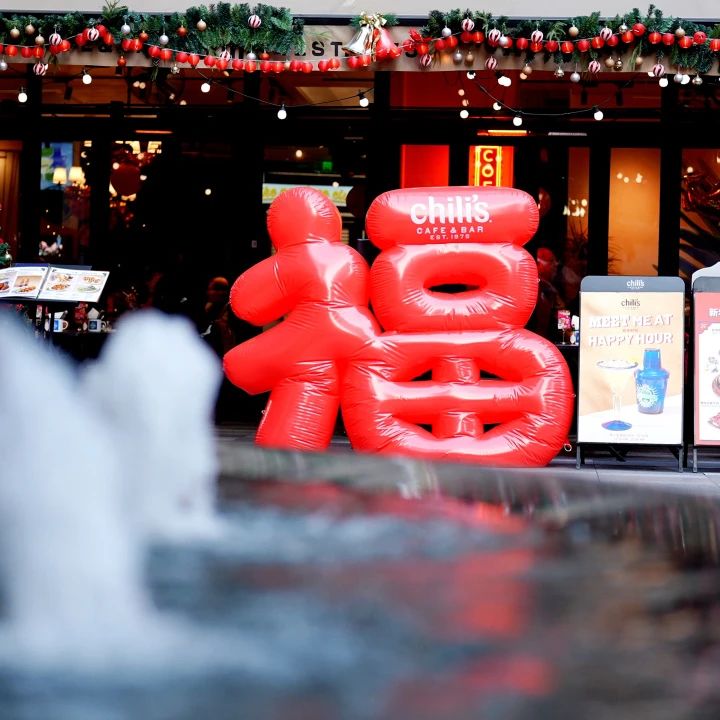 鸿寿坊早已将整个街区装扮得绚丽多彩,树上挂着的“宝葫芦”造型灯笼、大大的“福”字,早早为新年增添了喜庆的色彩。
