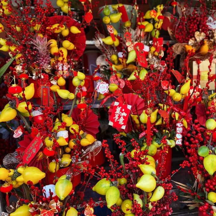 蝴蝶兰以其翩翩风姿、小金桔携带着硕果累累的喜悦,以及各类寓意吉祥的花卉,不仅装点着家家户户,迎接新年的崭新气象,更深深蕴含着人们对未来的美好祈愿。