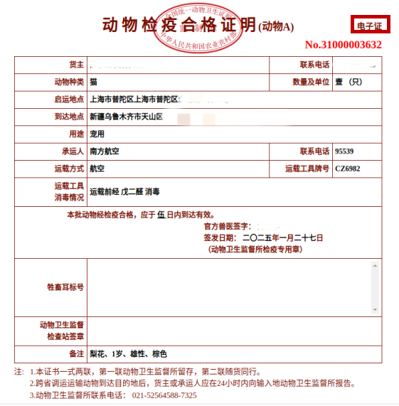 普陀区首张跨省无纸化动物检疫合格证明(动物A证)开具(附宠物托运检疫全流程) 2025年02月13日