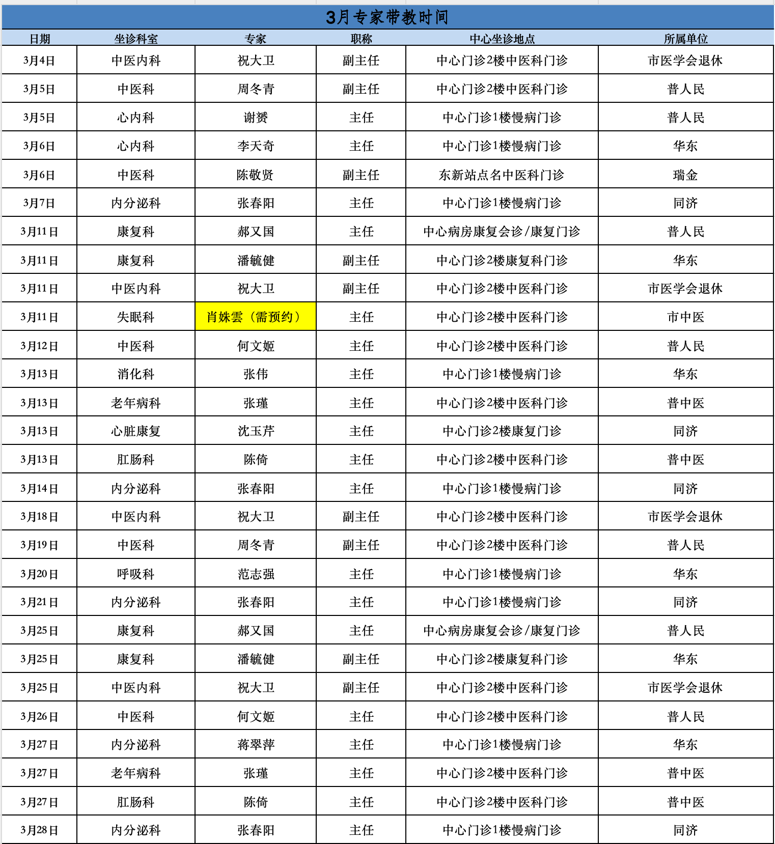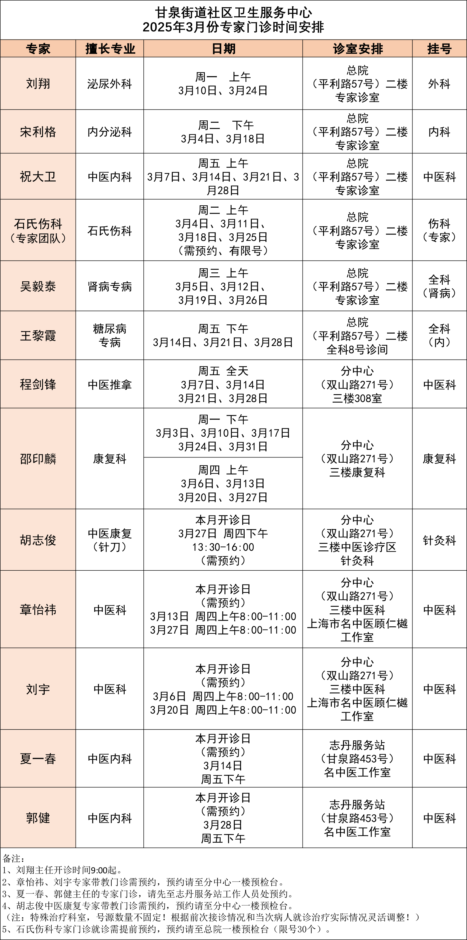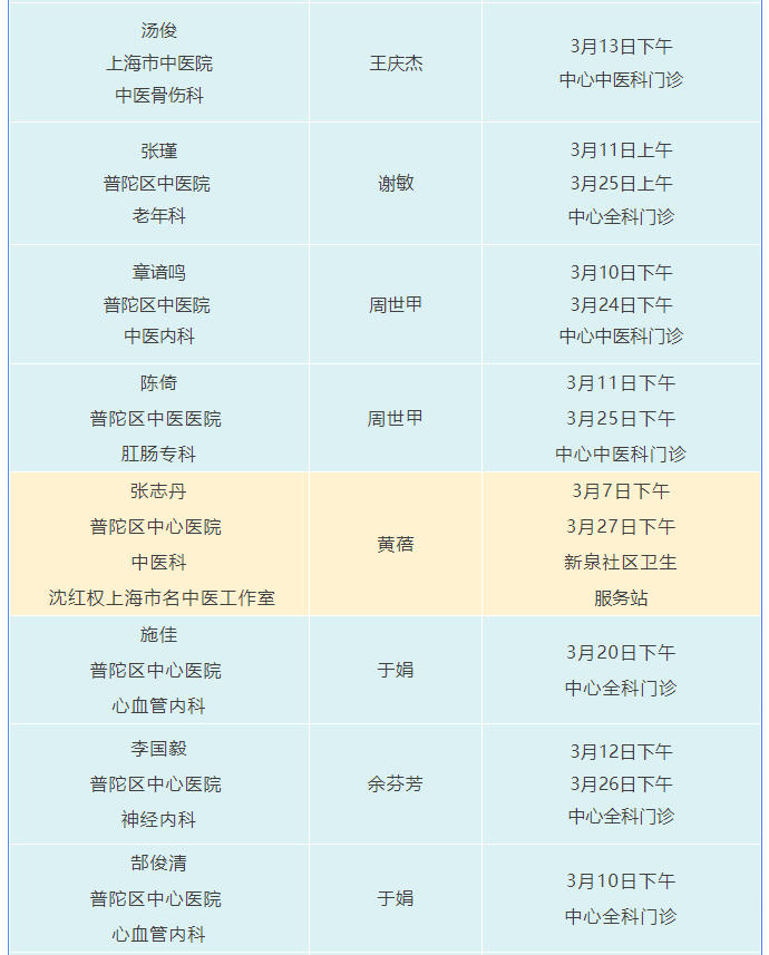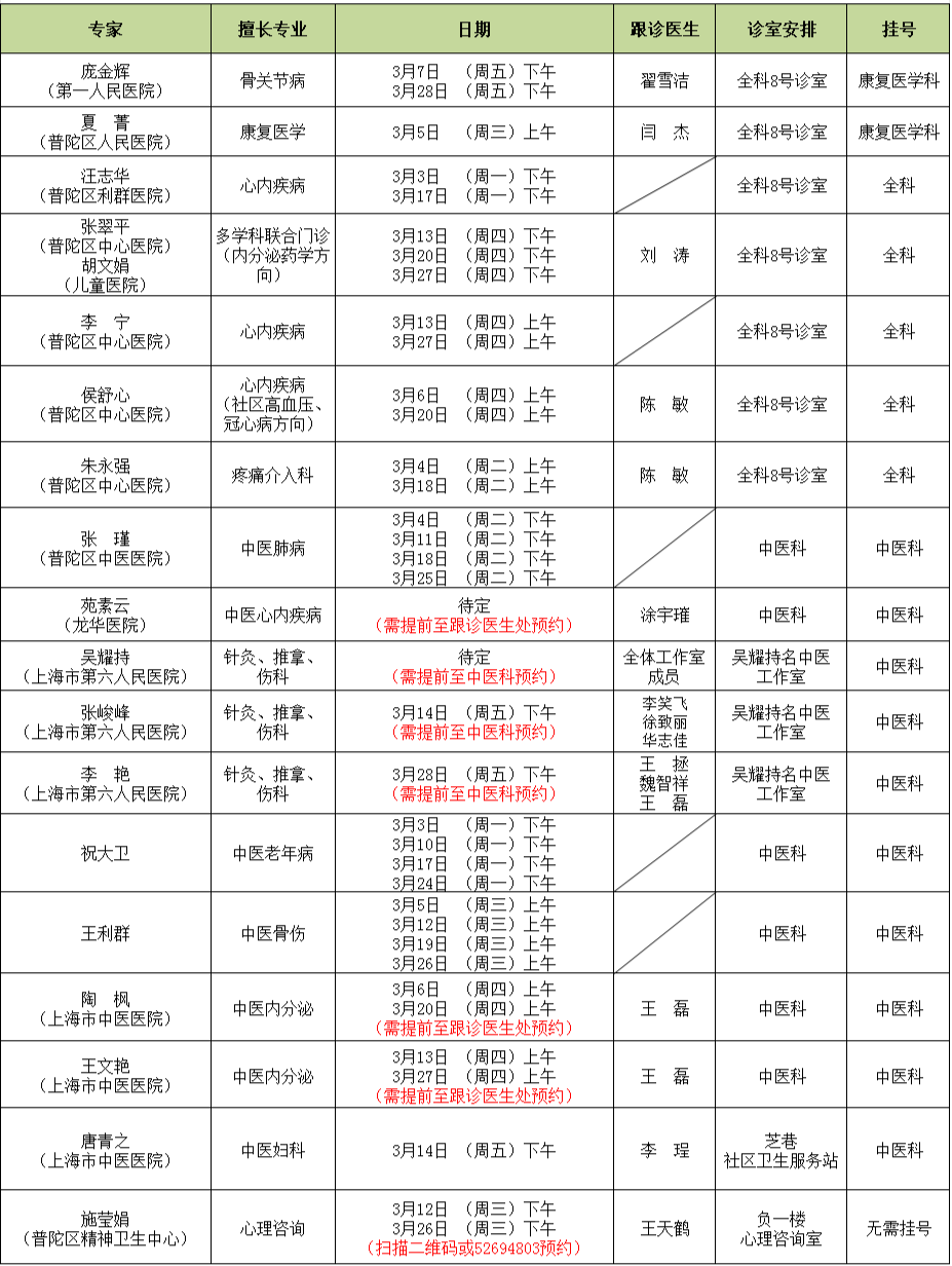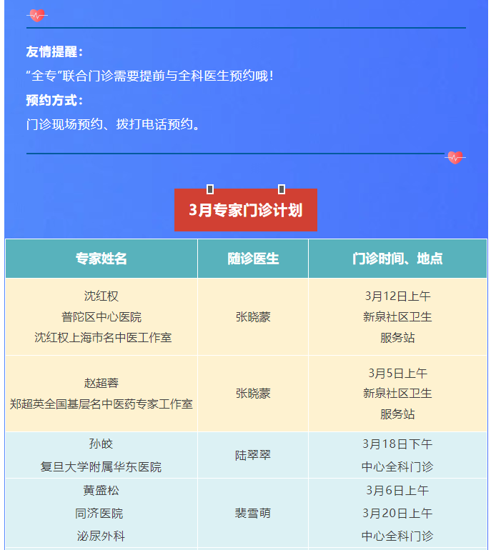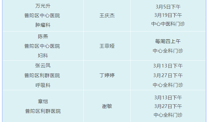 “家门口”就能看名医!普陀2025年3月专家门诊安排来啦 2025年03月06日