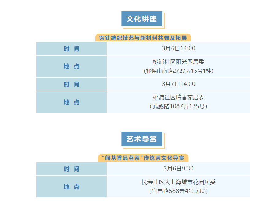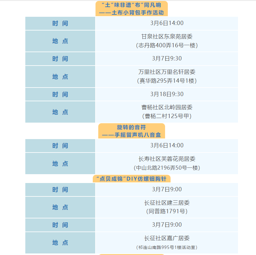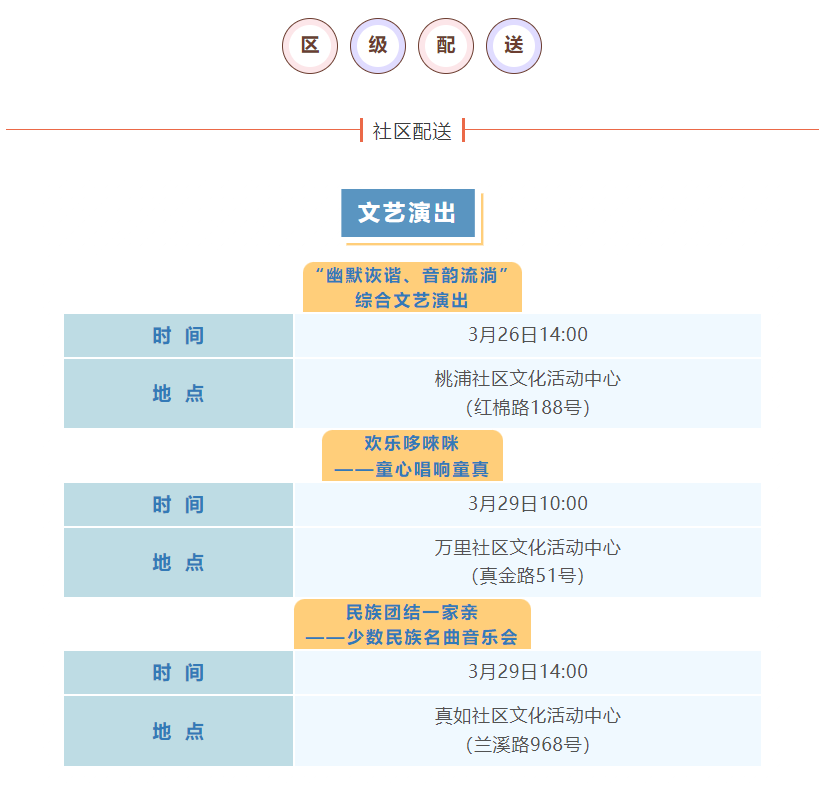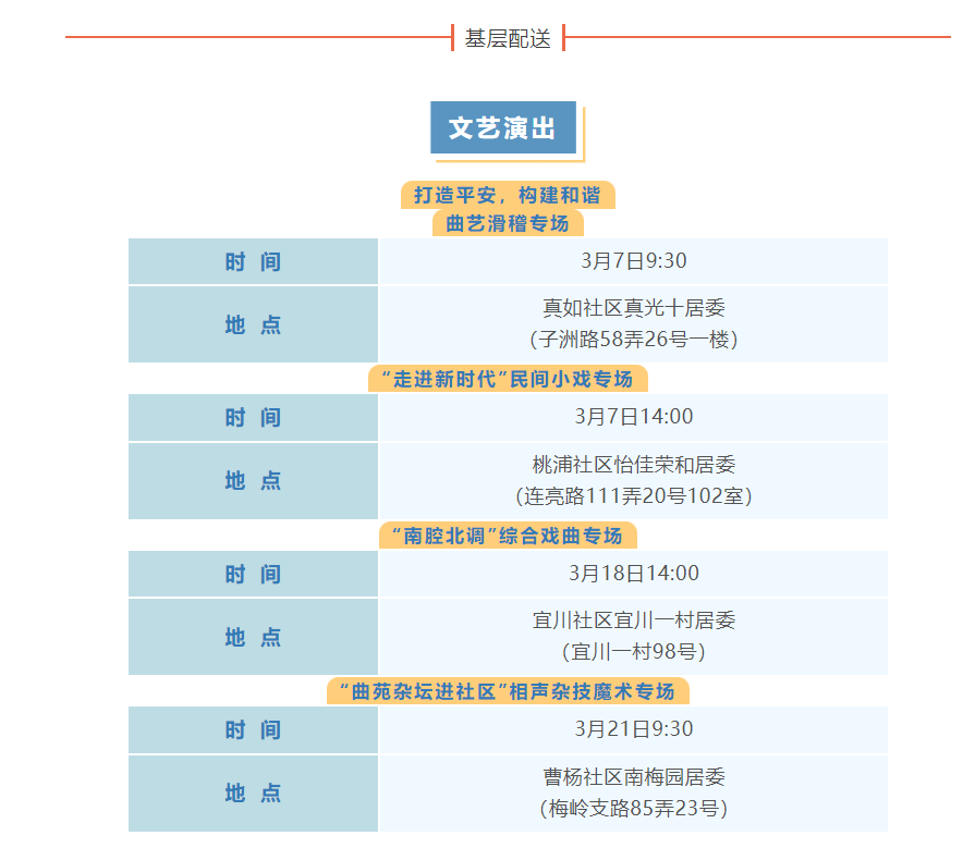 普陀区3月文化配送活动(区级配送)预告请查收!