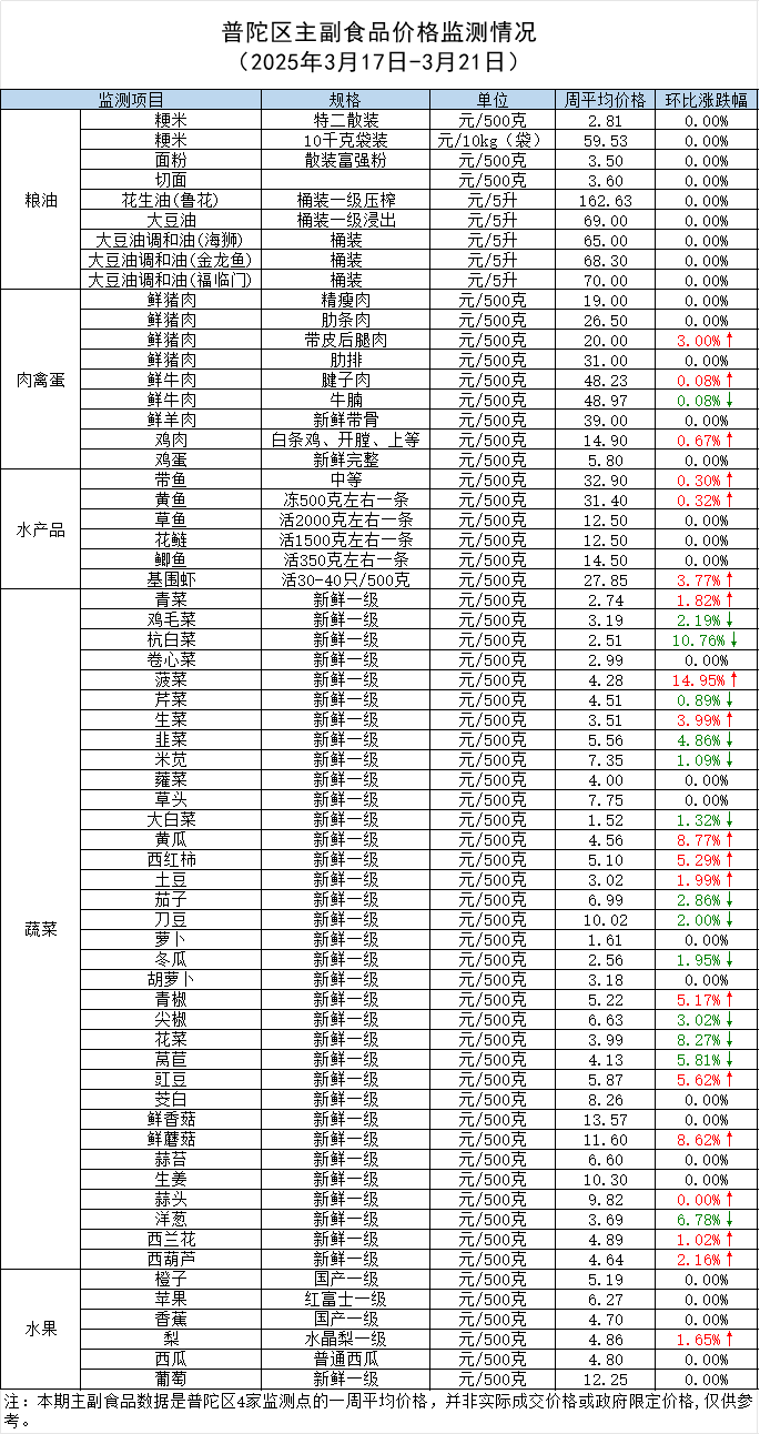 普陀区主副食品价格监测情况 (2025年3月21日)