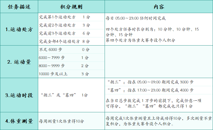 数据上传至大赛系统,积分由步数和强度累计计算。
