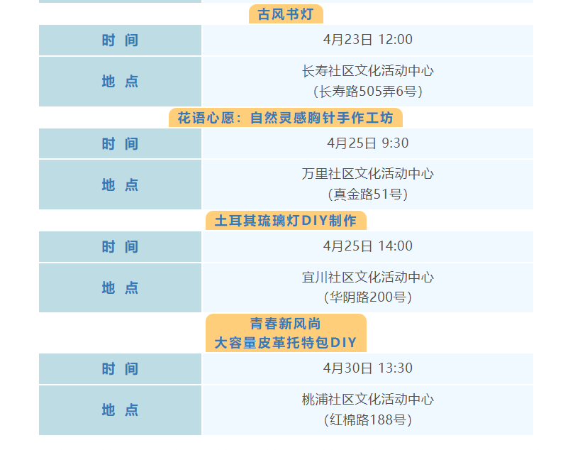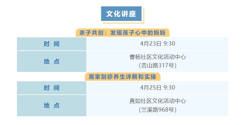 普陀区4月文化配送活动(市级配送)预告来啦!