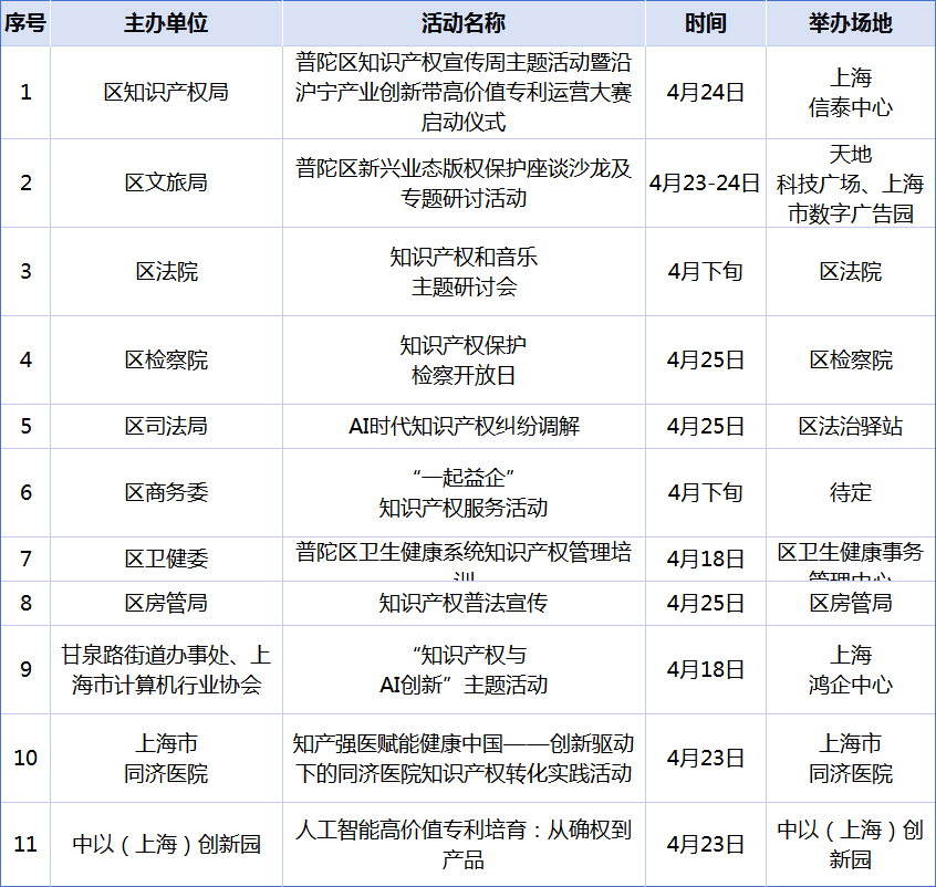 2025年普陀区知识产权宣传周系列活动预告来啦! 2025年04月23日