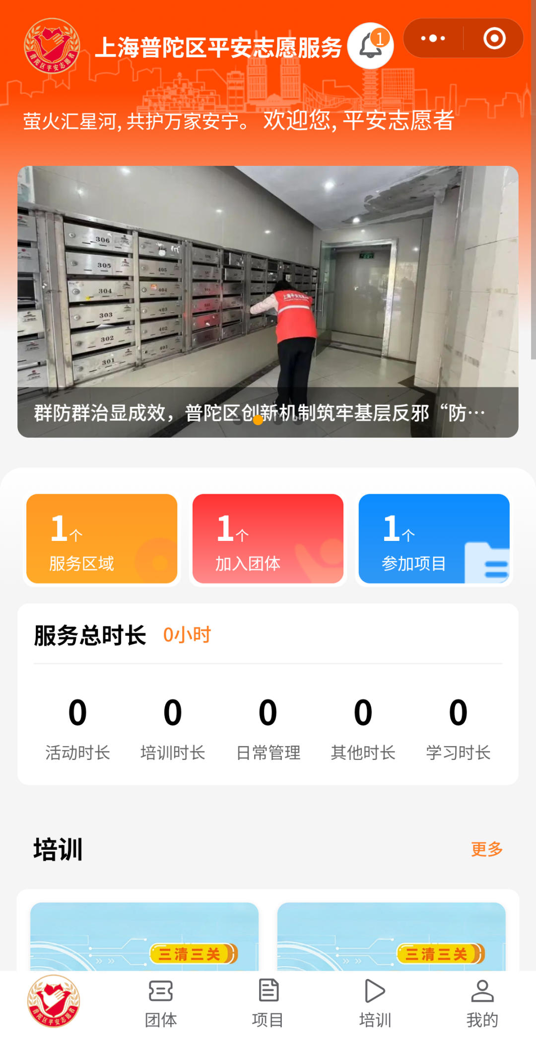 “上海普陀平安志愿服务小程序”首页