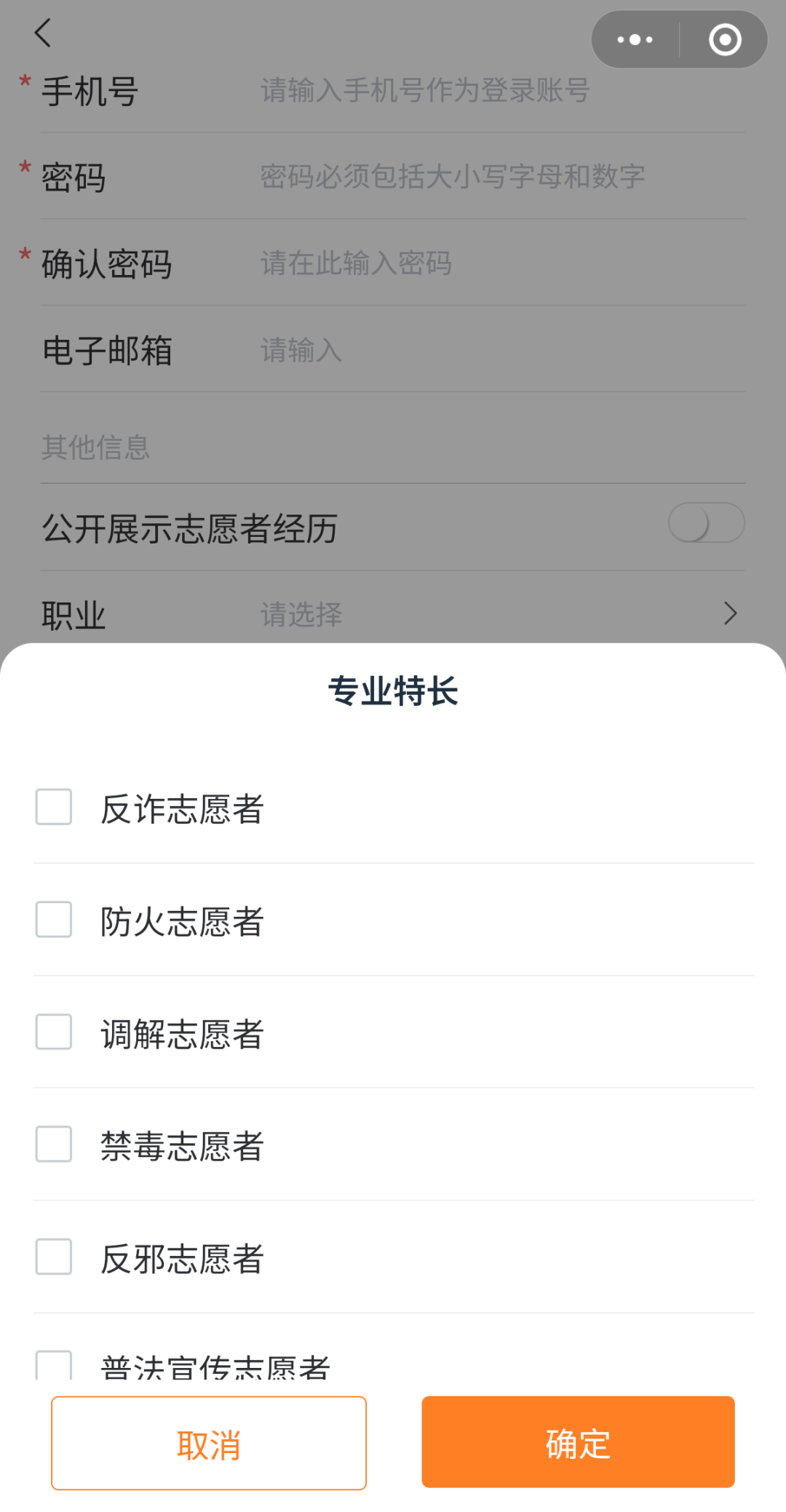 “上海普陀平安志愿服务小程序”特长标签
