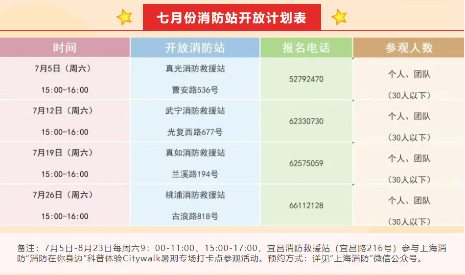 七月消防站开放计划来啦!快来普陀和蓝朋友们见面吧 2025年07月01日