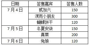 所有嘉宾签售权均在嘉宾签售当日上午 9:00 - 11:00,亲自前往签售服务台(二楼展厅签售区)进行预约登记,登记完成后,工作人员在现场进行公平抽签,抽取人数如下: