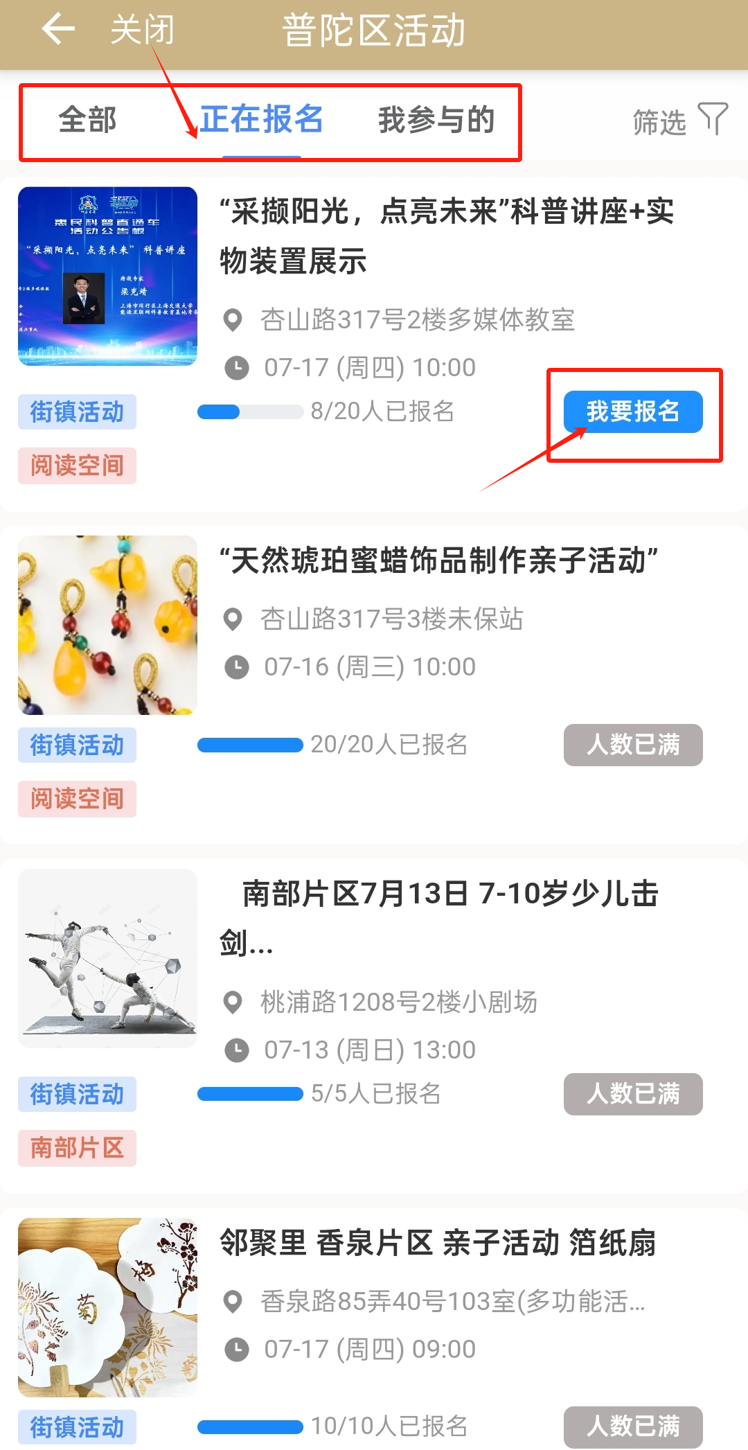 想参加活动,却不知道去哪儿报名?“随申办”普陀旗舰店早就为你准备好了一大波“缤纷活动”,只等你参加!