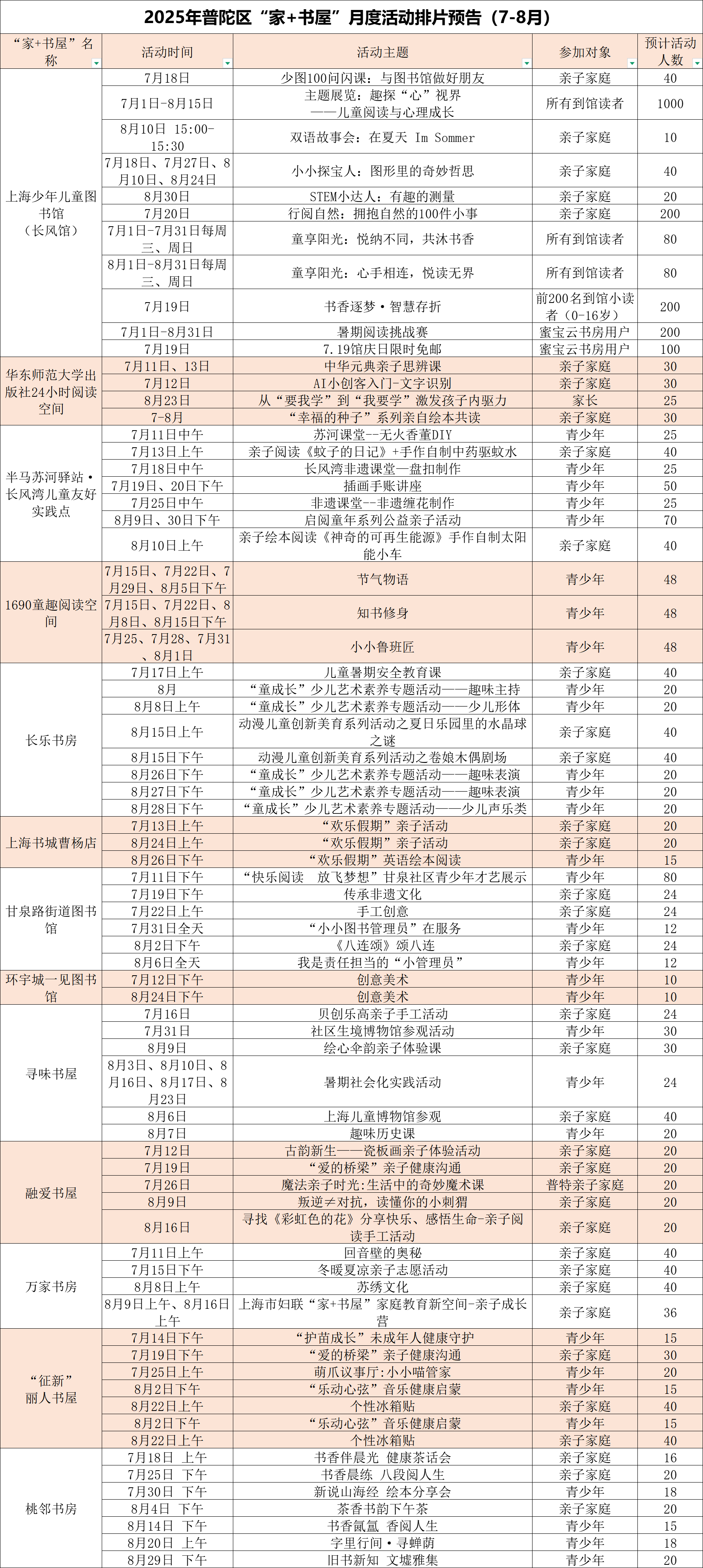 漫步普陀,解锁暑假新玩法,“家+书屋”探秘 Citywalk 等你来打卡! 2025年07月11日
