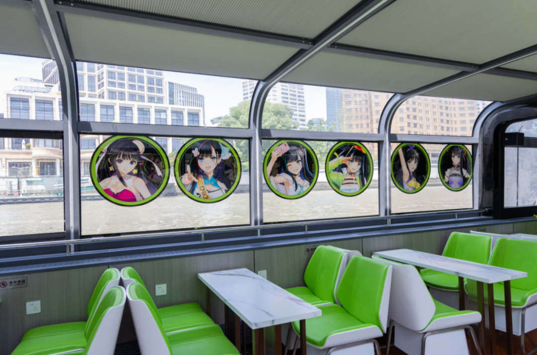 半透明船膜设计兼顾舱内观景体验与岸上视觉冲击,船顶巨幅动漫贴膜化作流动的城市文化地标,实现水岸景观与次元美学的有机共生,让市民游客在“船行画中”的独特体验里,感受动漫赋予城市水岸的崭新活力。