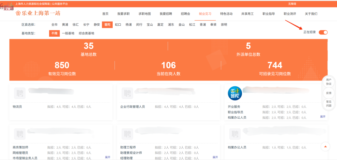 2. 个人查验见习基地的真伪,可以通过乐业上海第一站(https://jobs.rsj.sh.gov.cn/ggzp-shrs/index.html#/)就业见习专区查询或者咨询各区就业促进中心。