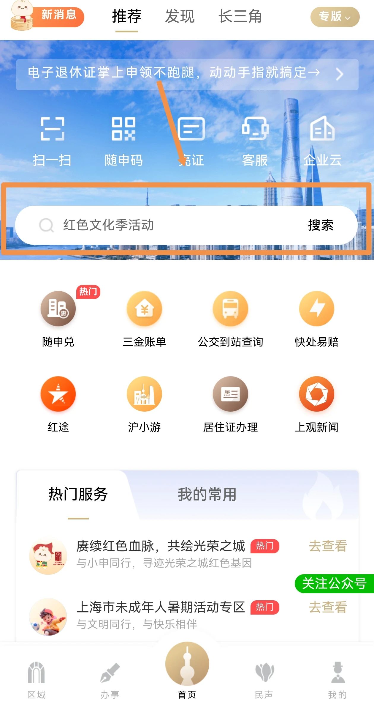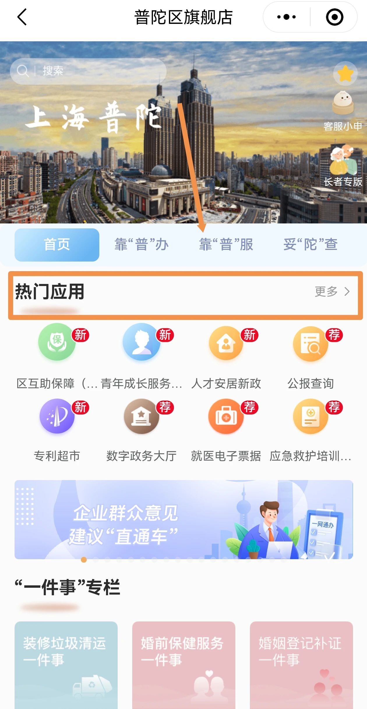 第一步:打开随申办市民云APP,在搜索栏中输入“普陀旗舰店”并进行搜索;
