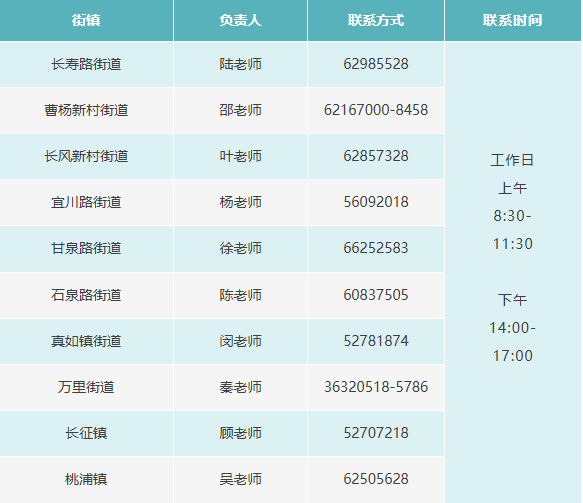 曹杨新村街道、长风新村街道、万里街道、桃浦镇、石泉路街道、长征镇