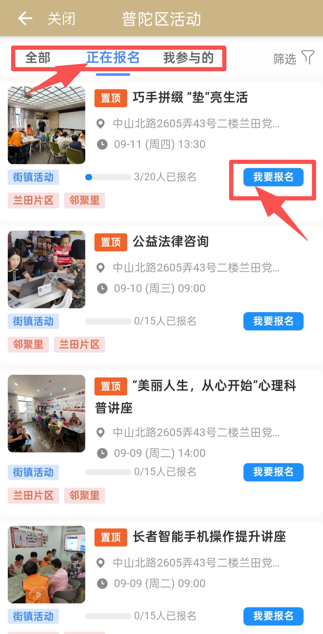 想参加活动,却不知道去哪儿报名?“随申办”普陀旗舰店早就为你准备好了一大波“缤纷活动”,只等你参加!