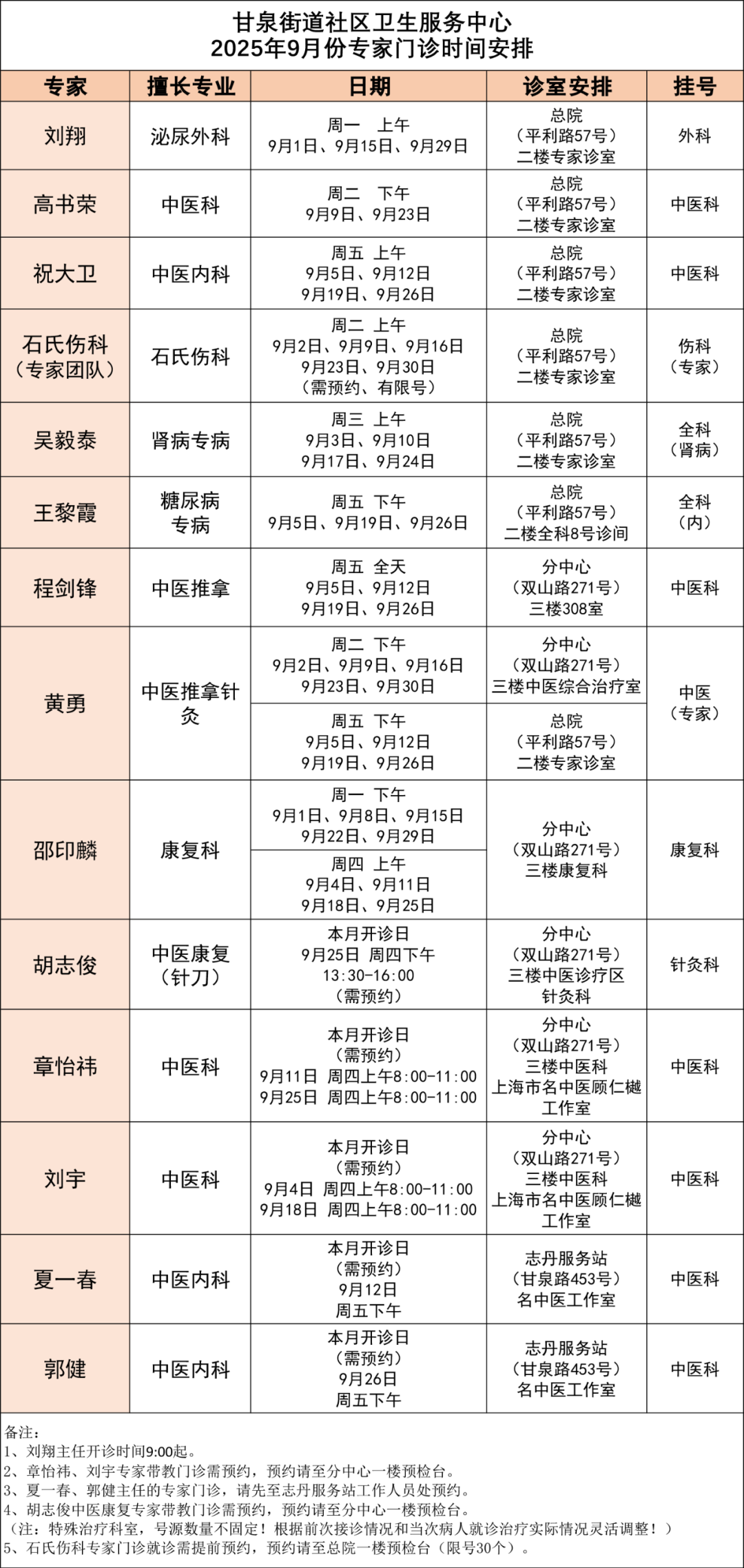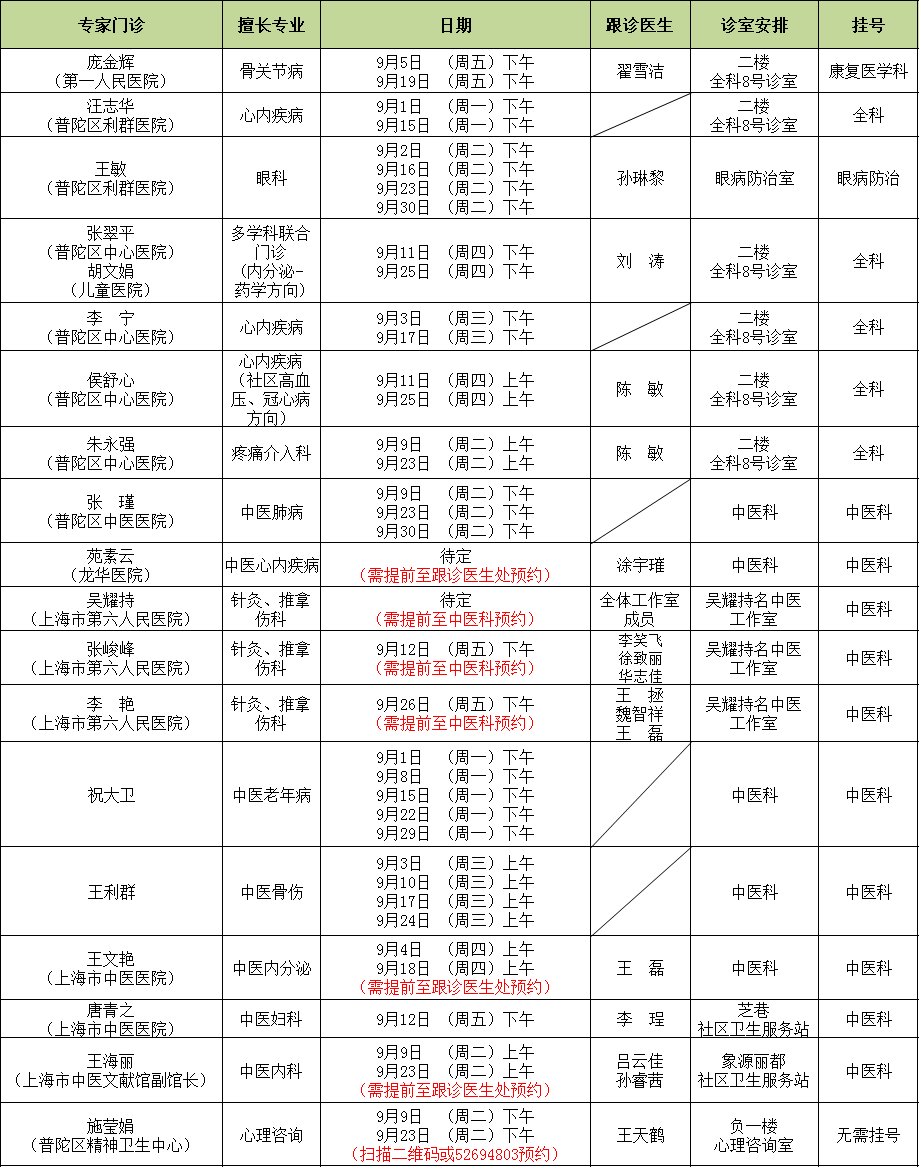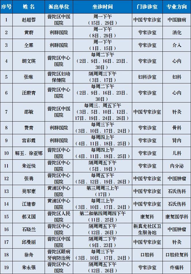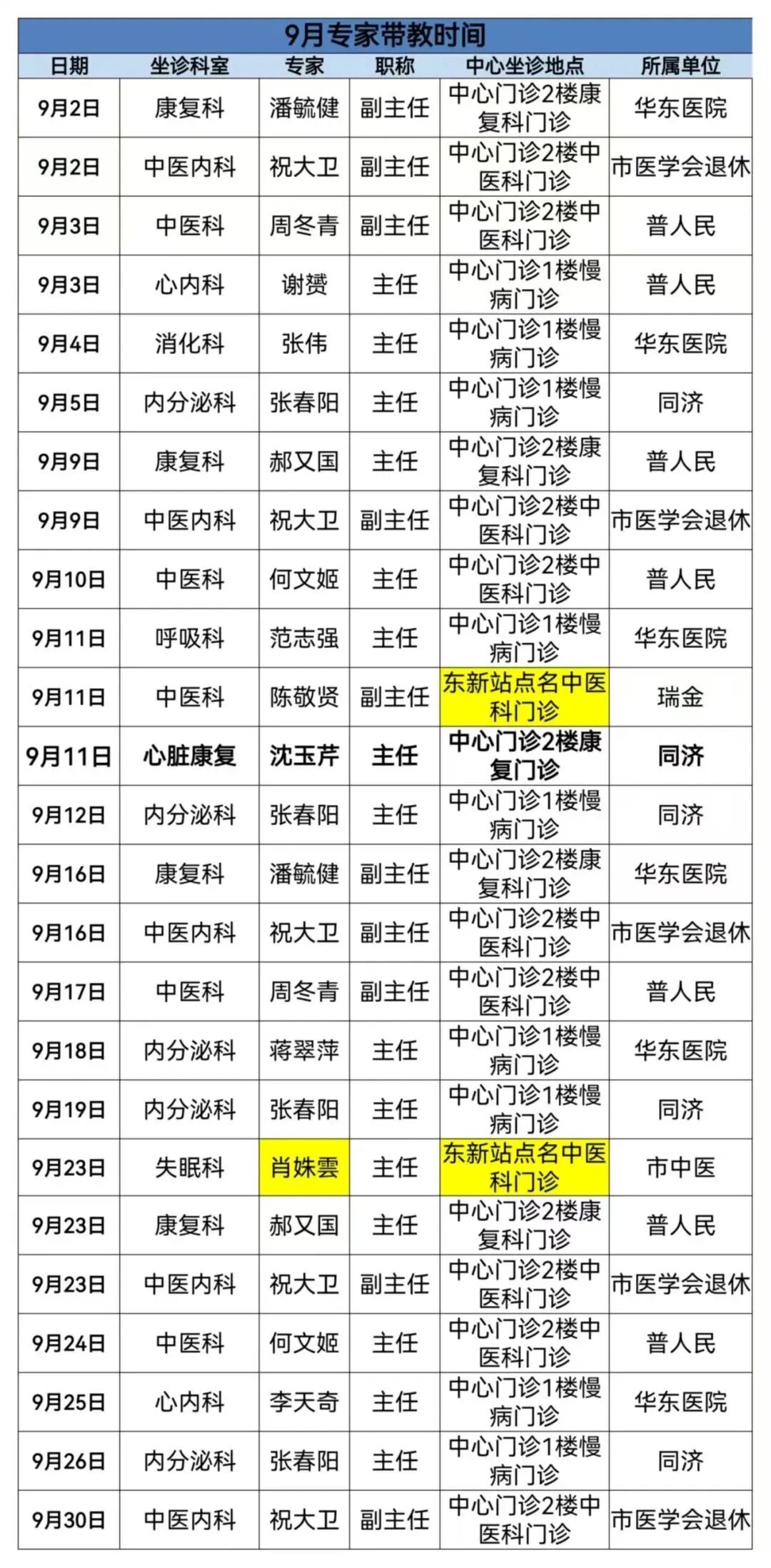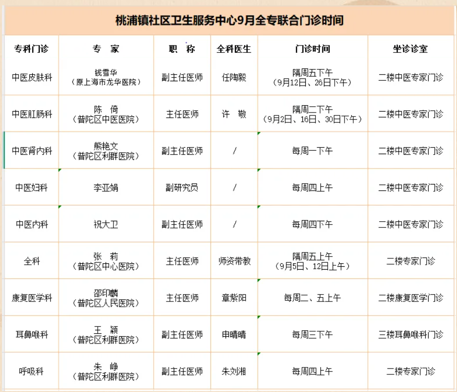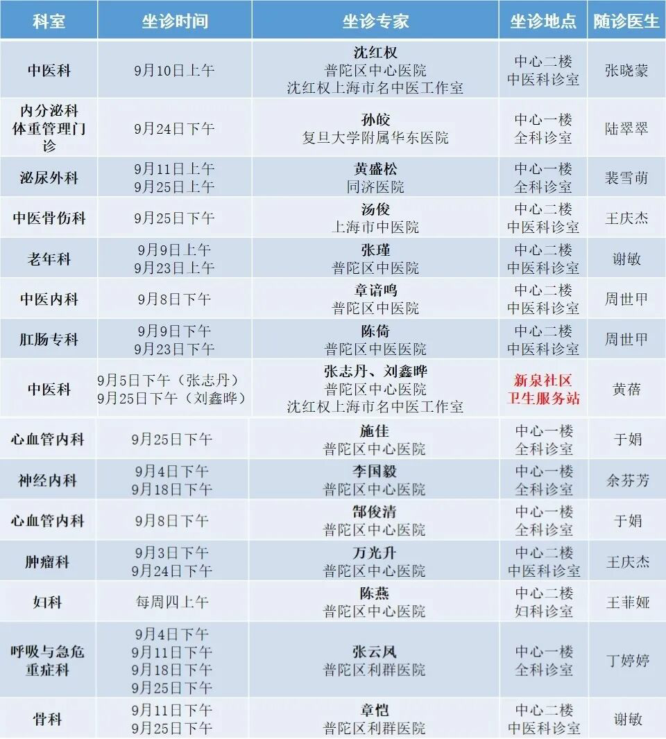 “家门口”就能看名医!普陀2025年9月专家门诊安排来啦 2025年09月04日