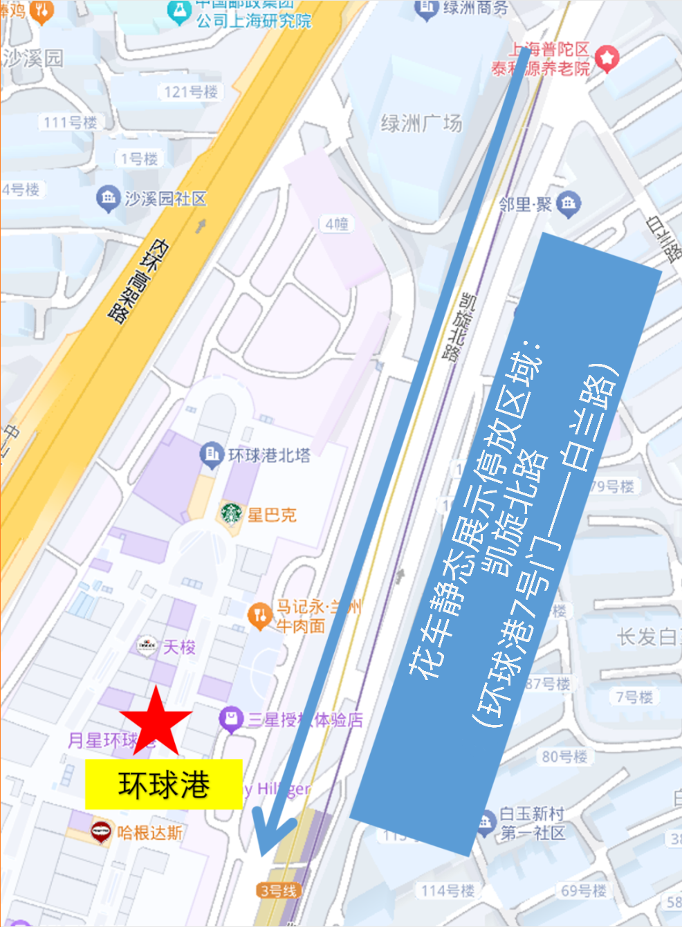 现场共有25辆巡游花车(4辆停放环球港广场、21辆停放凯旋北路西侧)供市民观赏,普陀警方将对凯旋北路部分路段(环球港凯旋北路7号门——白兰路)进行临时交通管控,届时请机动车和非机动车驾驶员配合现场警方的引导,有序通行。