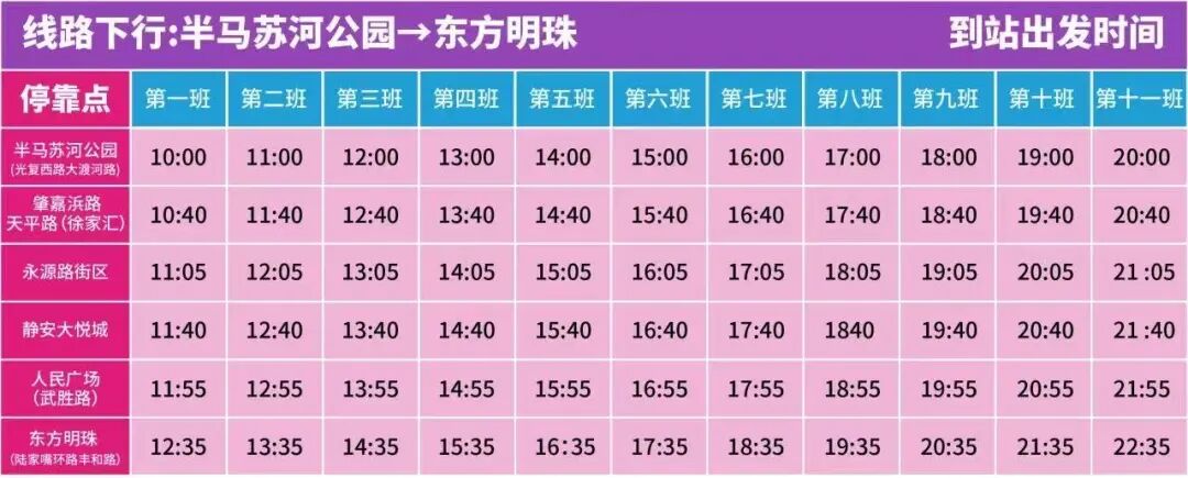 这场充满趣味的城市巡礼并未止步于水域。“乐游上海 寻找周同学”公交专线也同步开通,连接半马苏河公园与东方明珠,沿途设置六大热门打卡地标,双向发车、班次密集:自9月13日起,每周五、六、日发车,10月1日至12日更是每日运营。参与者还可收集六款限定主题车票,开启一站式城市寻“周”之旅。