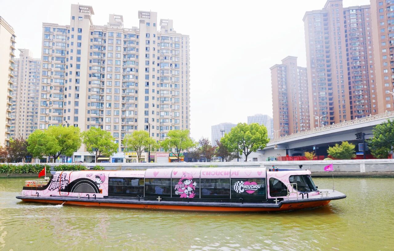 苏州河游船的粉色涂装和“周同学”卡通形象