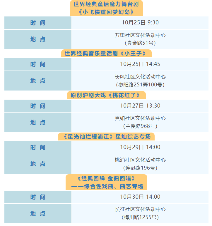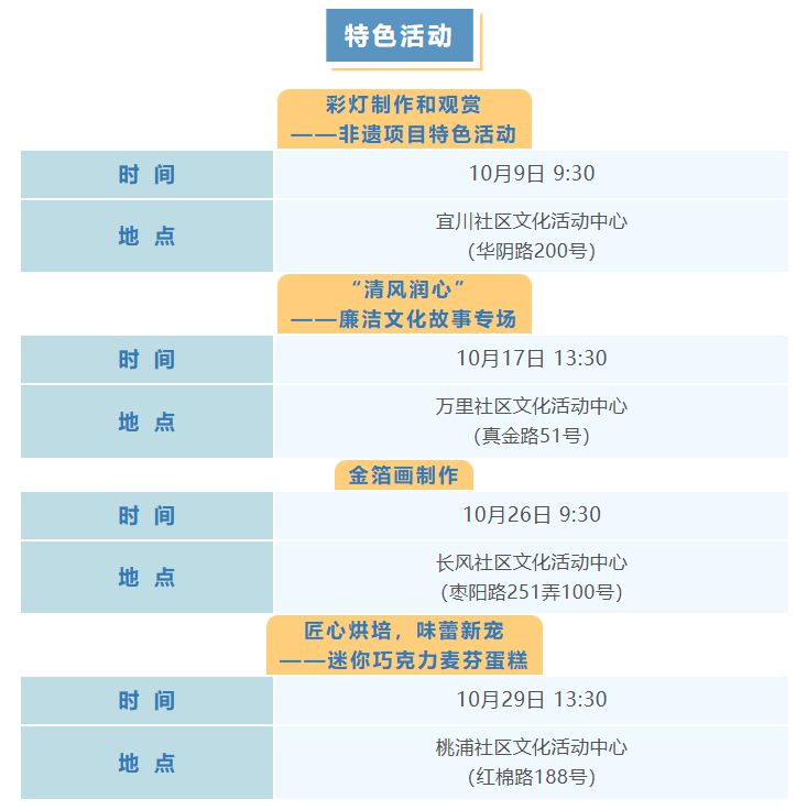 普陀区10月文化配送活动(市级配送)预告来啦!