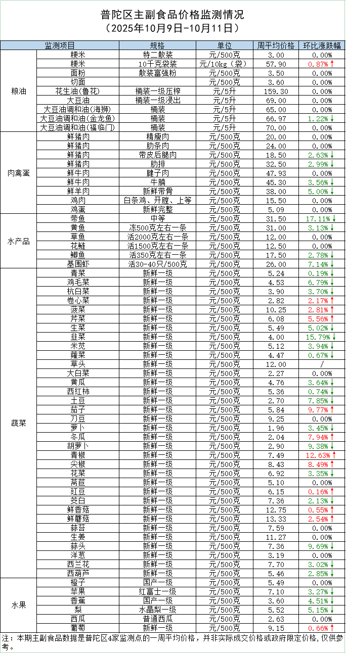 普陀区主副食品价格监测情况 (2025年10月11日)