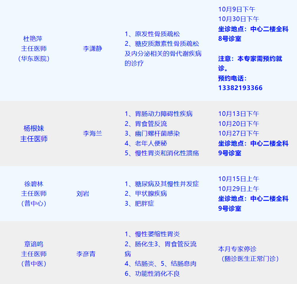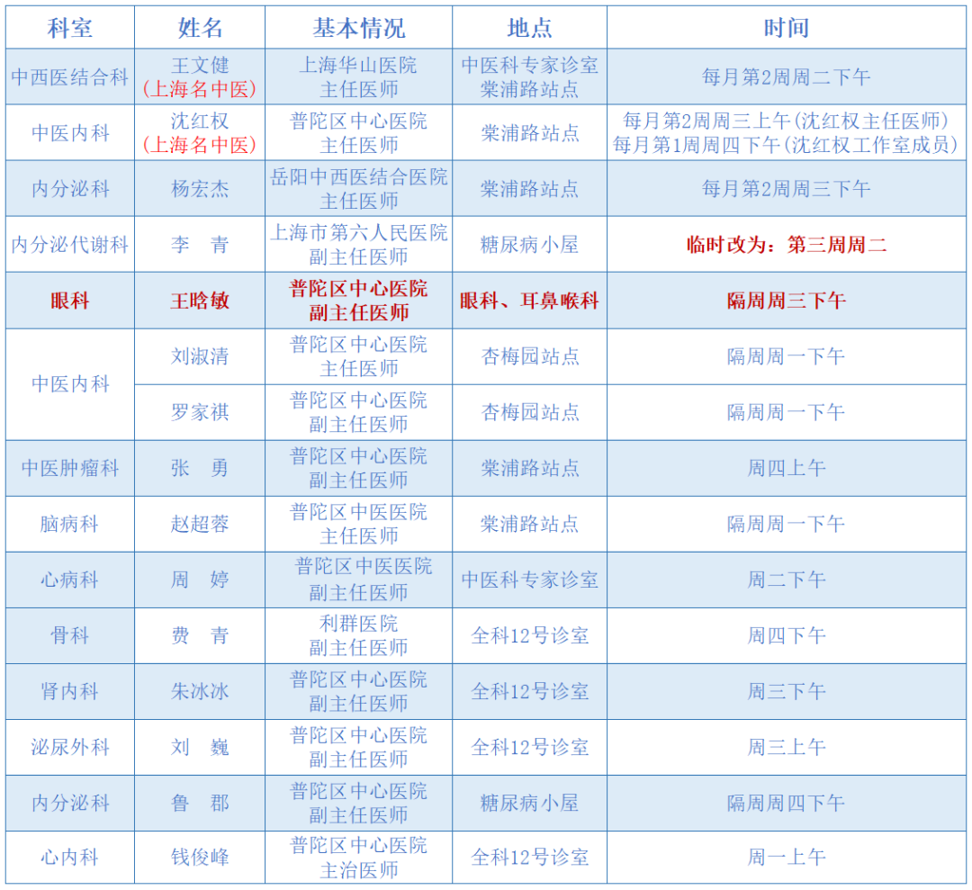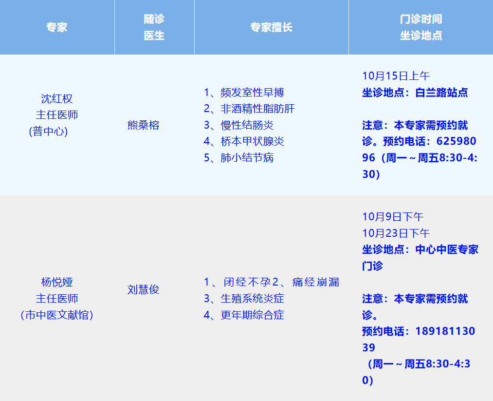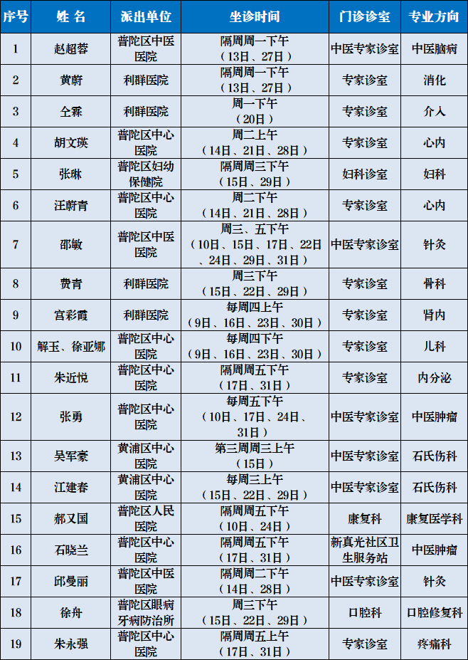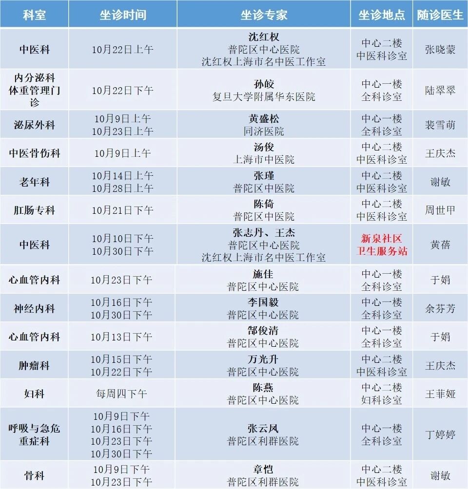 “家门口”就能看名医!普陀2025年10月专家门诊安排来啦 2025年10月11日