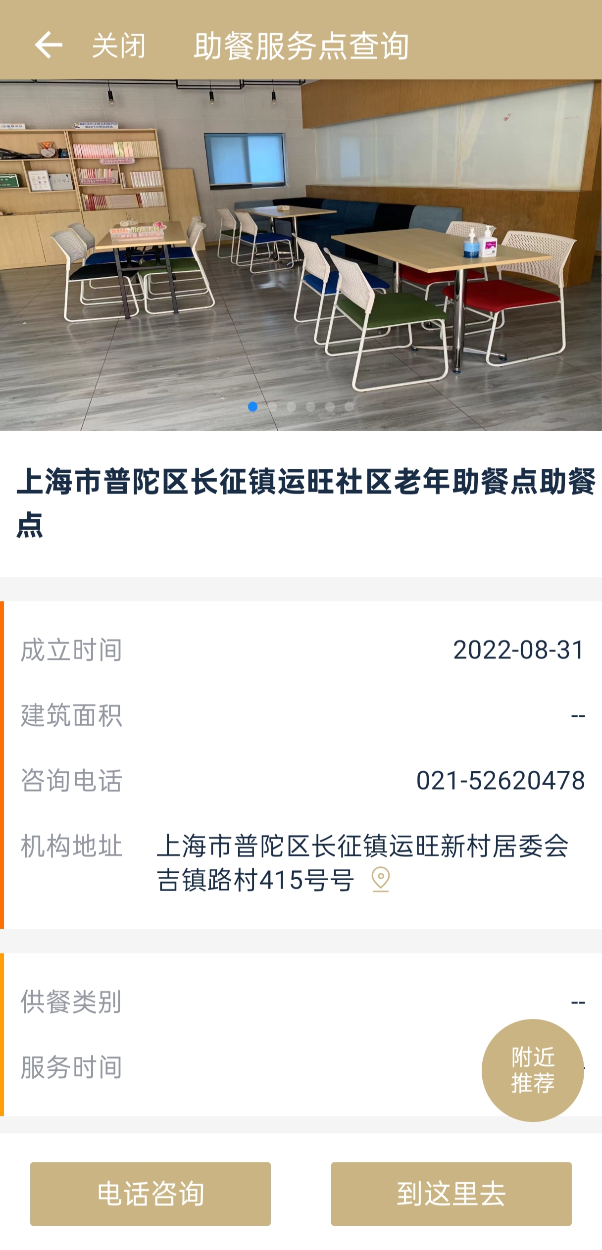 3、点击对应机构卡片,即可查看电话、食堂照片等详细信息。