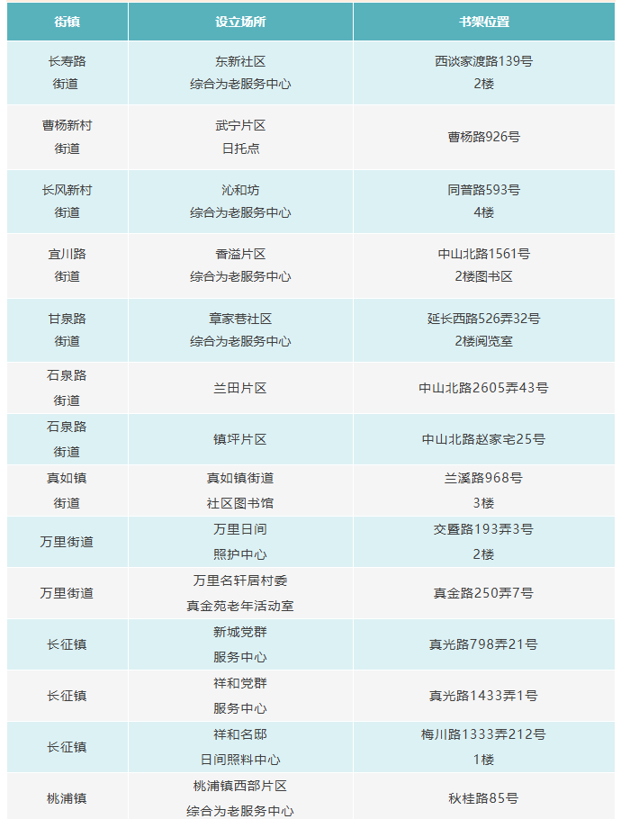 普陀区“乐龄书架”设立清单