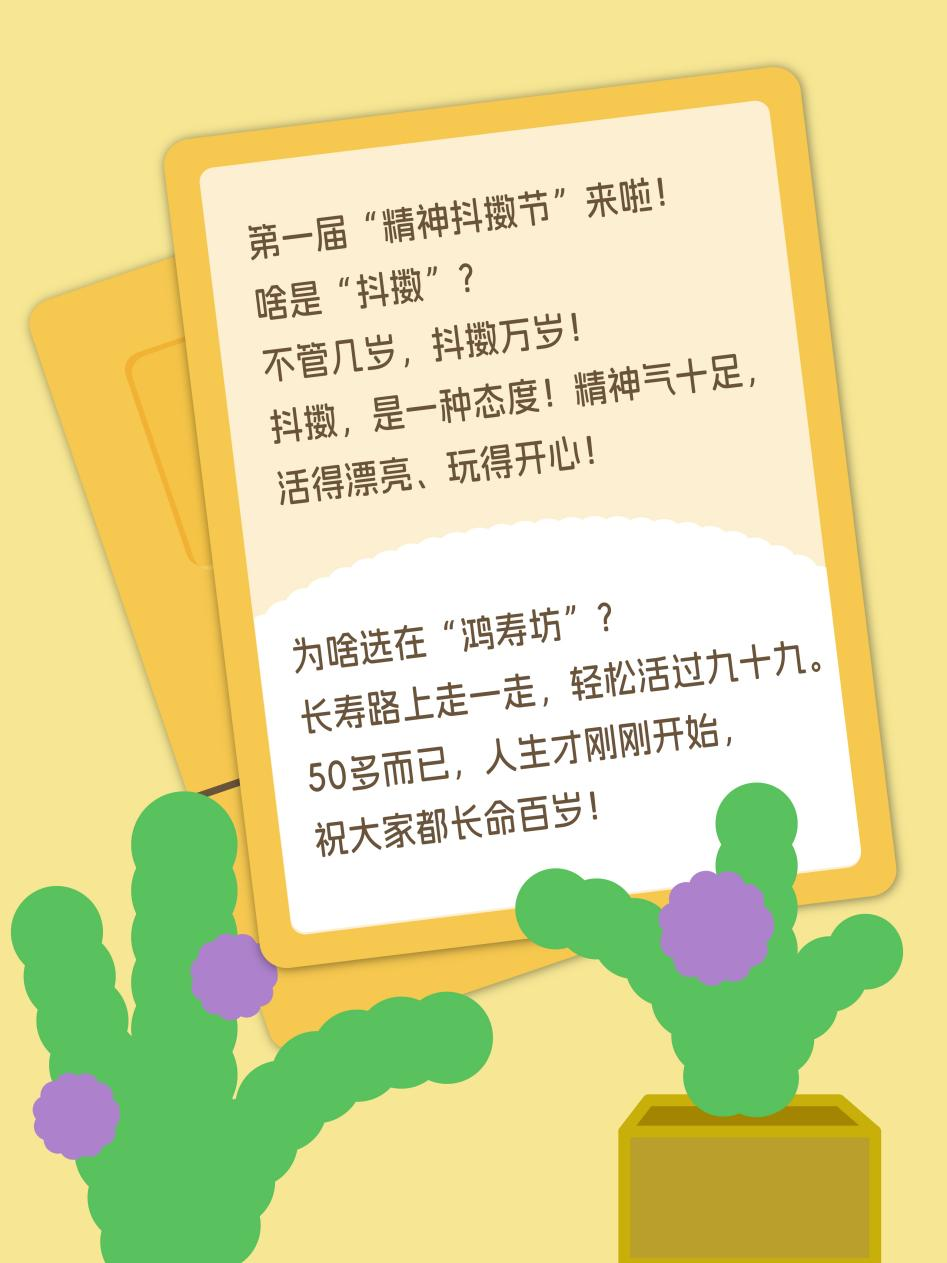 来源: 上海普陀在人口老龄化趋势日益凸显的今天,如何推动老年群体实现从“养老”到“享老”的转变,已成为全社会共同关注的话题。在此背景下,2025首届“精神抖擞节”将于2025年11月15日至16日在普陀区“长者友好商城”鸿寿坊正式亮相。本次活动以“人生刚刚开始”为主题,旨在倡导一种积极、健康、充满活力的退休生活方式,鼓励中老年人以“精神抖擞”之姿,开启人生崭新篇章。