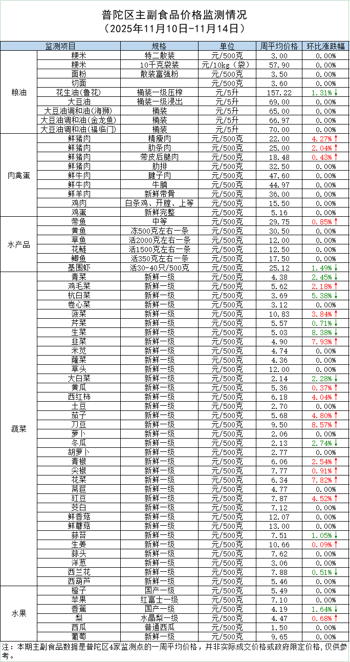 普陀区主副食品价格监测情况 (2025年11月17日)