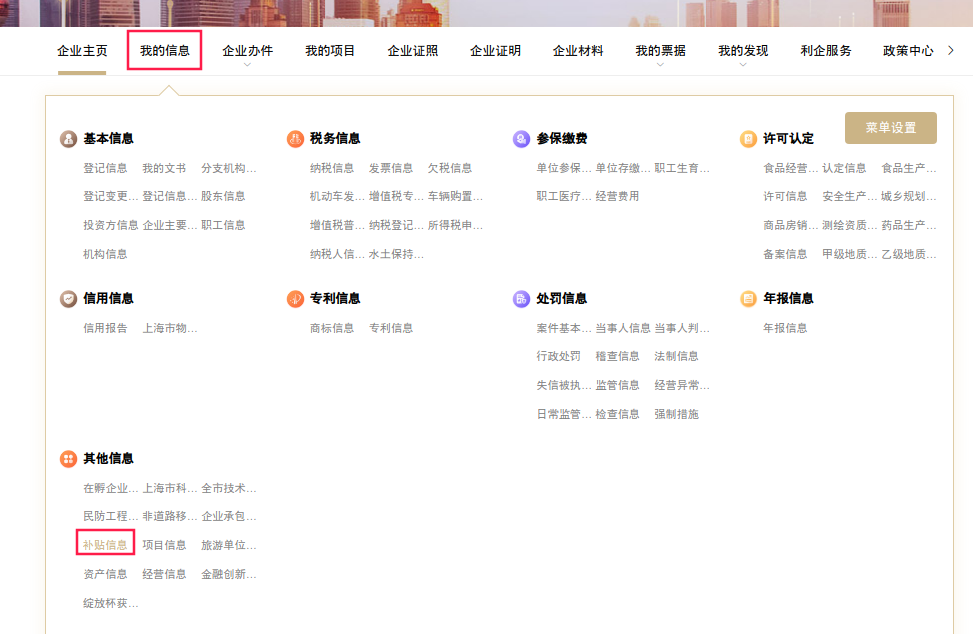 3.点击“我的信息”,在“其他信息”中点击“补贴信息”。