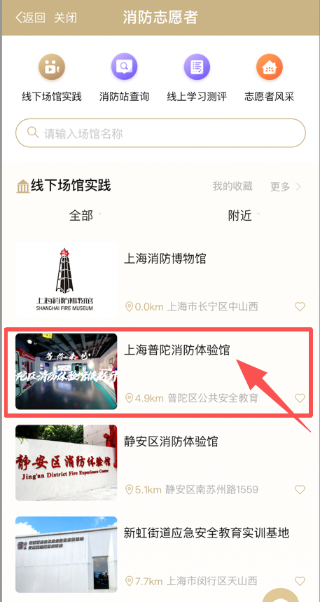 通过地图定位查找身边场馆、消防站进行预约,并可随时在线报名参与各消防单位发起专项志愿者活动,加入志愿行列。
