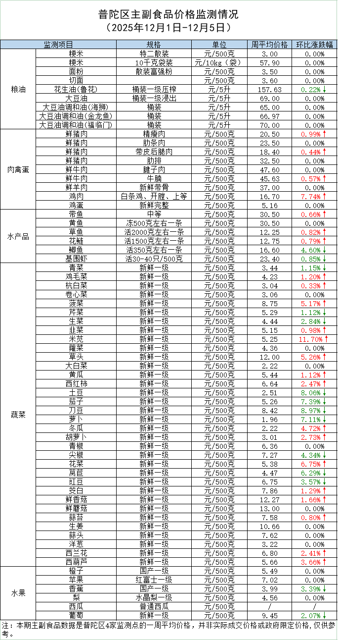 普陀区主副食品价格监测情况 (2025年12月5日)