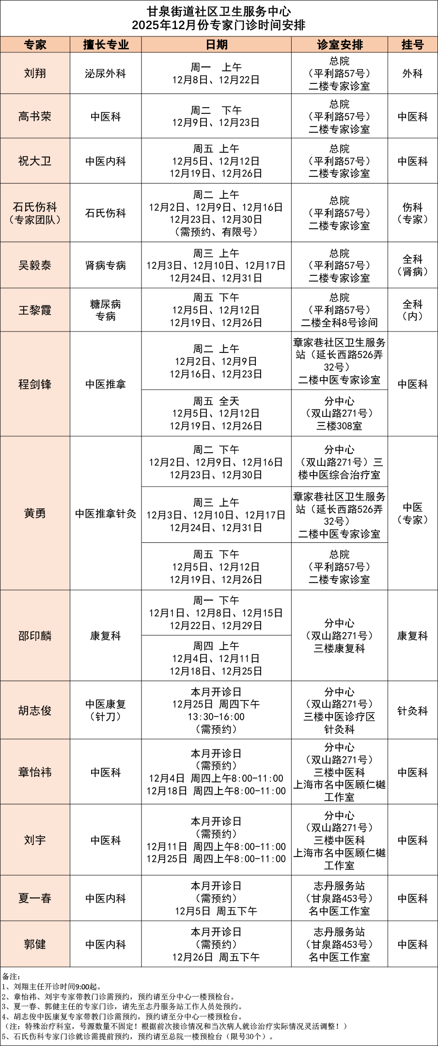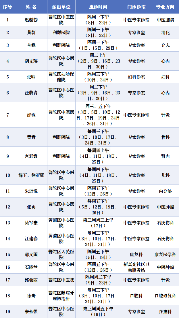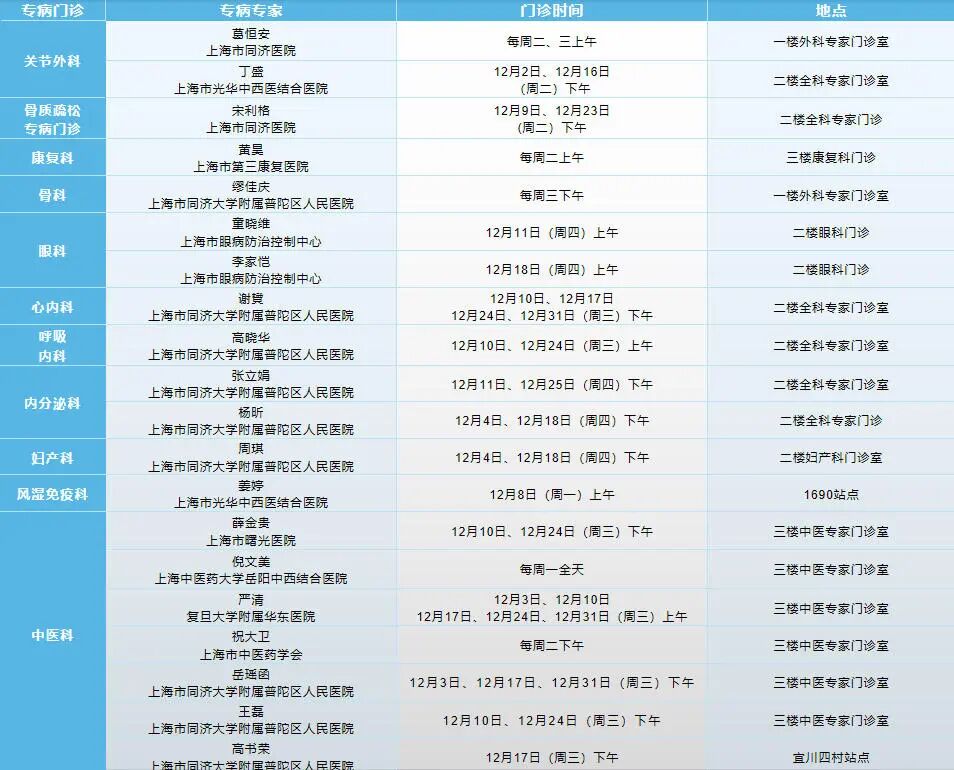 “家门口”就能看名医!普陀2025年12月专家门诊安排来啦 2025年12月05日