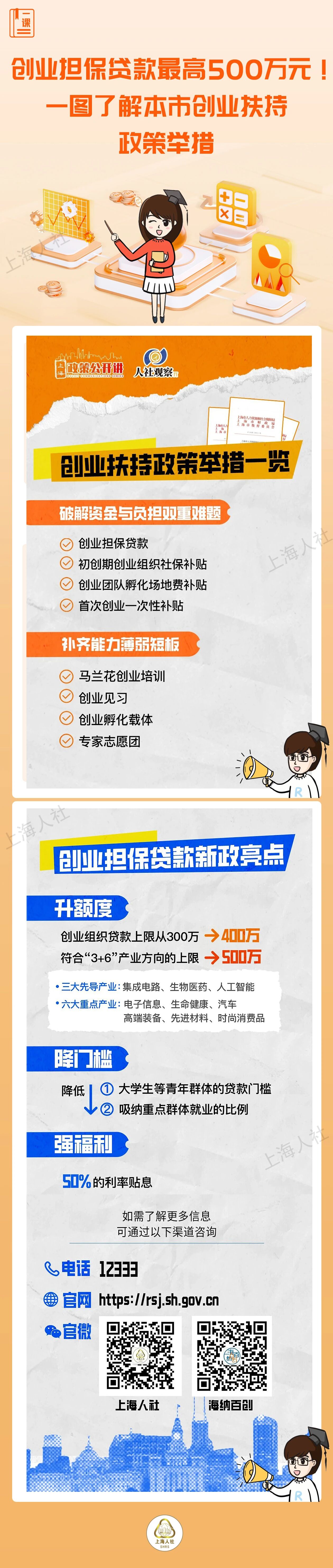 创业也无忧!本市有一系列创业扶持政策举措,其中创业担保贷款最高500万元。有需要的普陀创业者,赶紧了解一下吧!