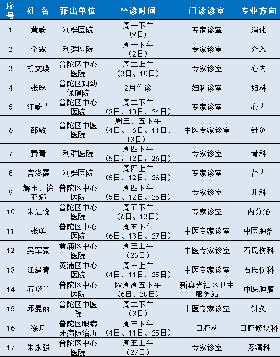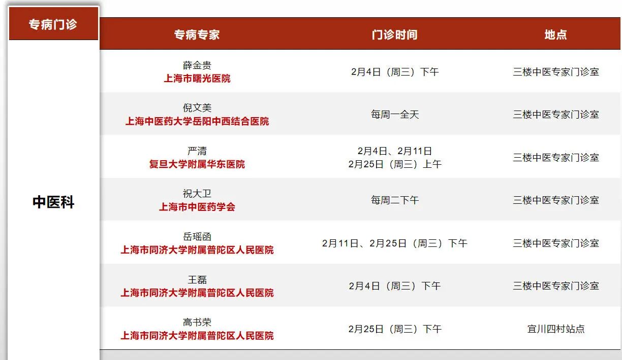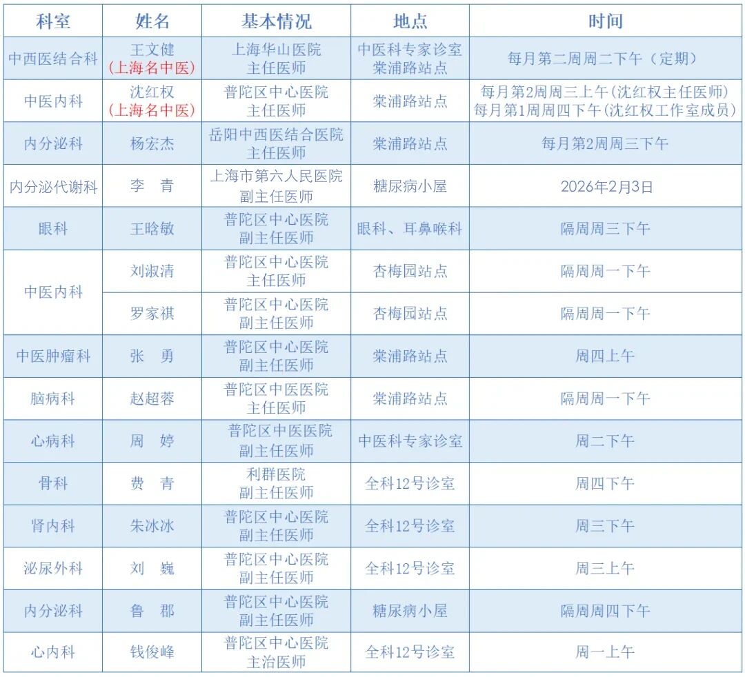 “家门口”就能看名医!普陀2026年2月专家门诊安排来啦 2026年02月04日