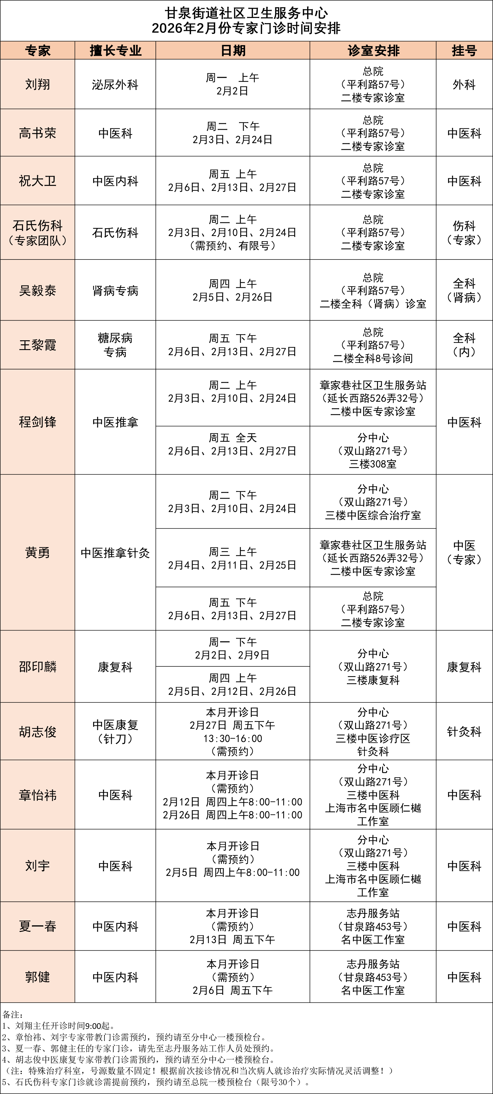 曹杨社卫全专联合门诊专家排班