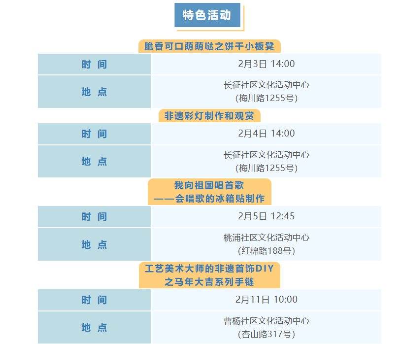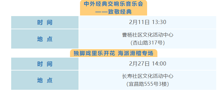 普陀区2月文化配送活动(市级配送)预告来啦!