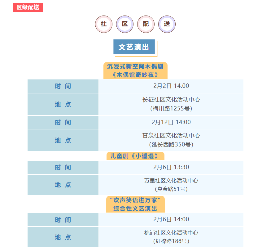 普陀区2026年2月文化配送活动预告(区级配送、基层配送)来啦!