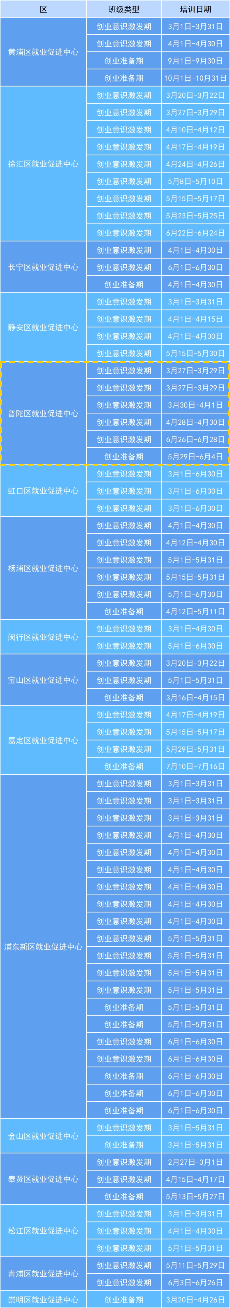 具体开班时间敬请关注“乐业普陀”微信公众号!