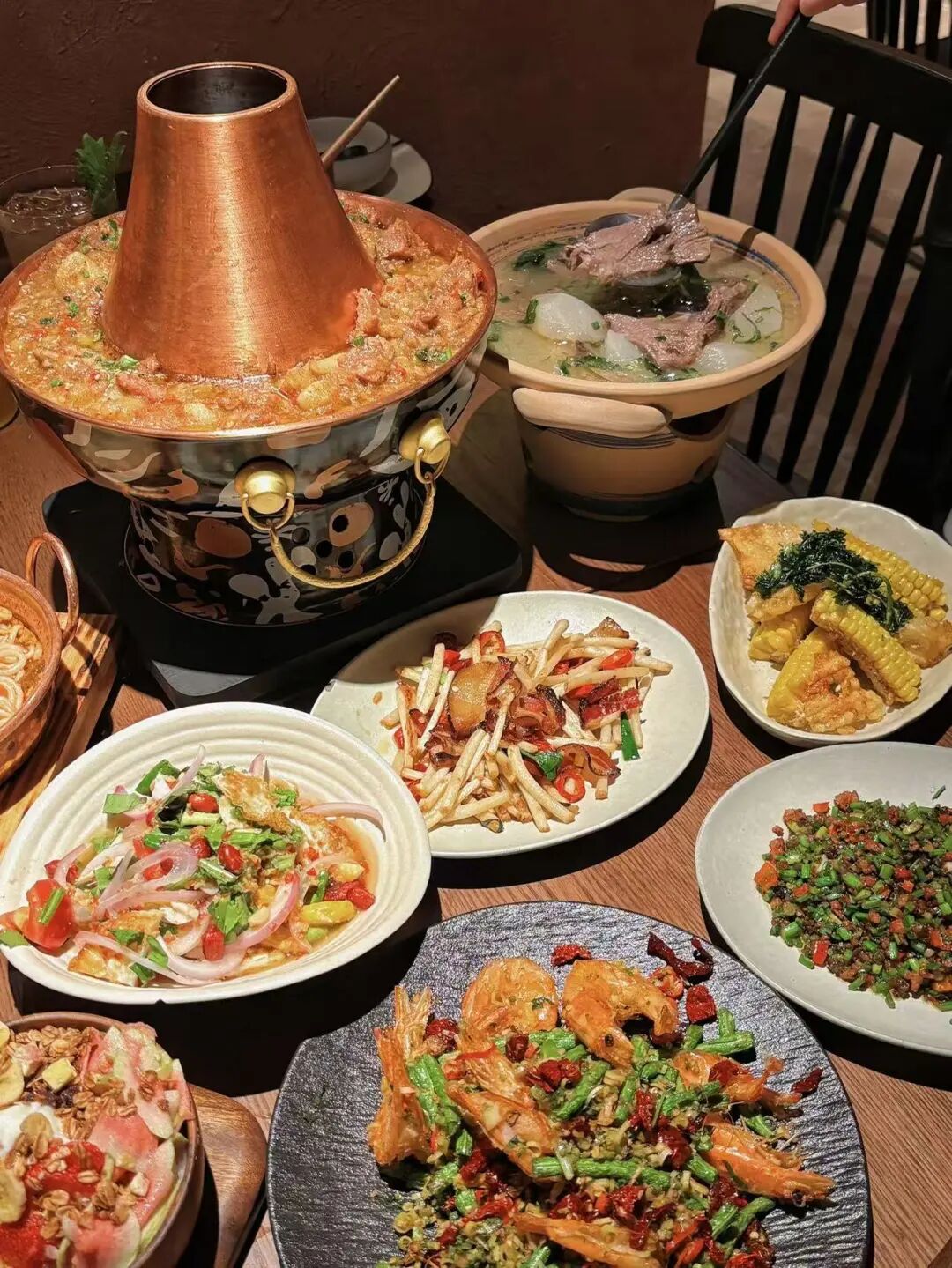 除此之外,佤家酸汤鱼酸辣鲜醇、咕嘟肉末包浆豆腐口感丰富,甜品芋泥泡鲁达“香甜软糯,椰奶冰沙基底,清新冰爽”,解腻又爽口。店内简约雅致,藏着云南民族元素,适配商圈逛街小憩、朋友小聚小酌,尽显云南风味的纯粹与入味。
