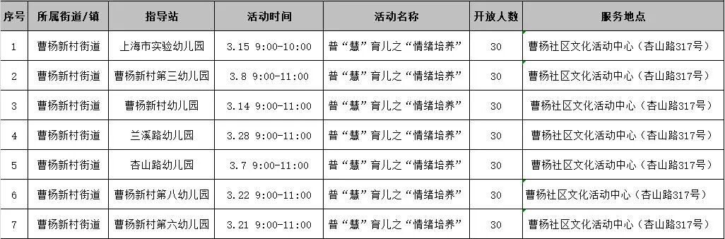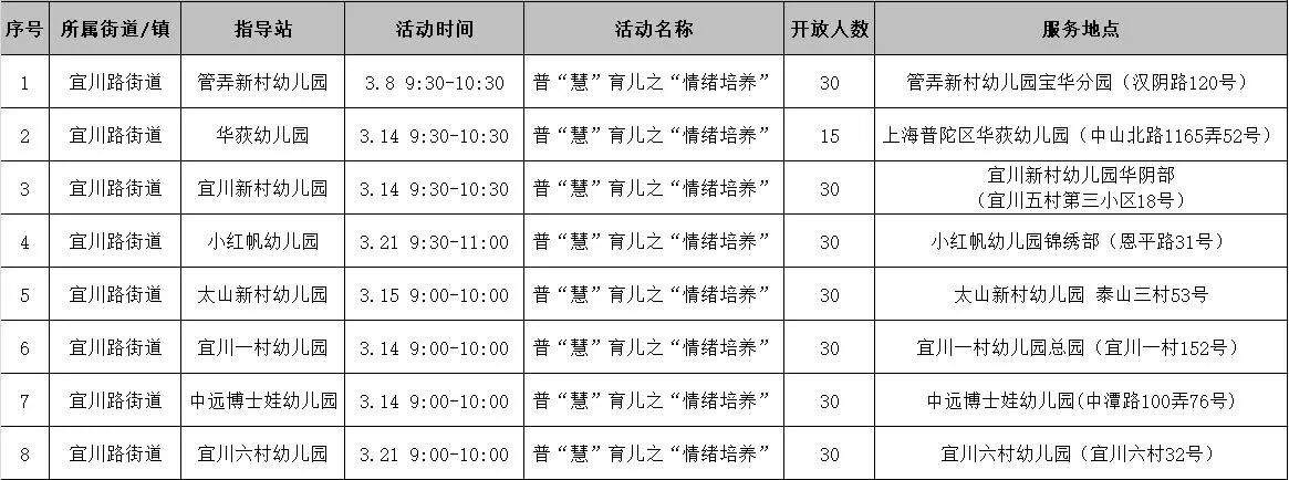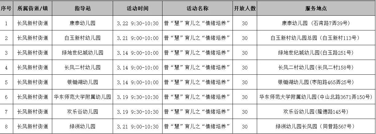 来源: 上海普陀3月,普陀区75个科学育儿指导站将以“科学育儿——情绪培养”为主题,组织开展各类亲子活动,为辖区内3岁以下婴幼儿家庭提供科学育儿指导免费公益服务。