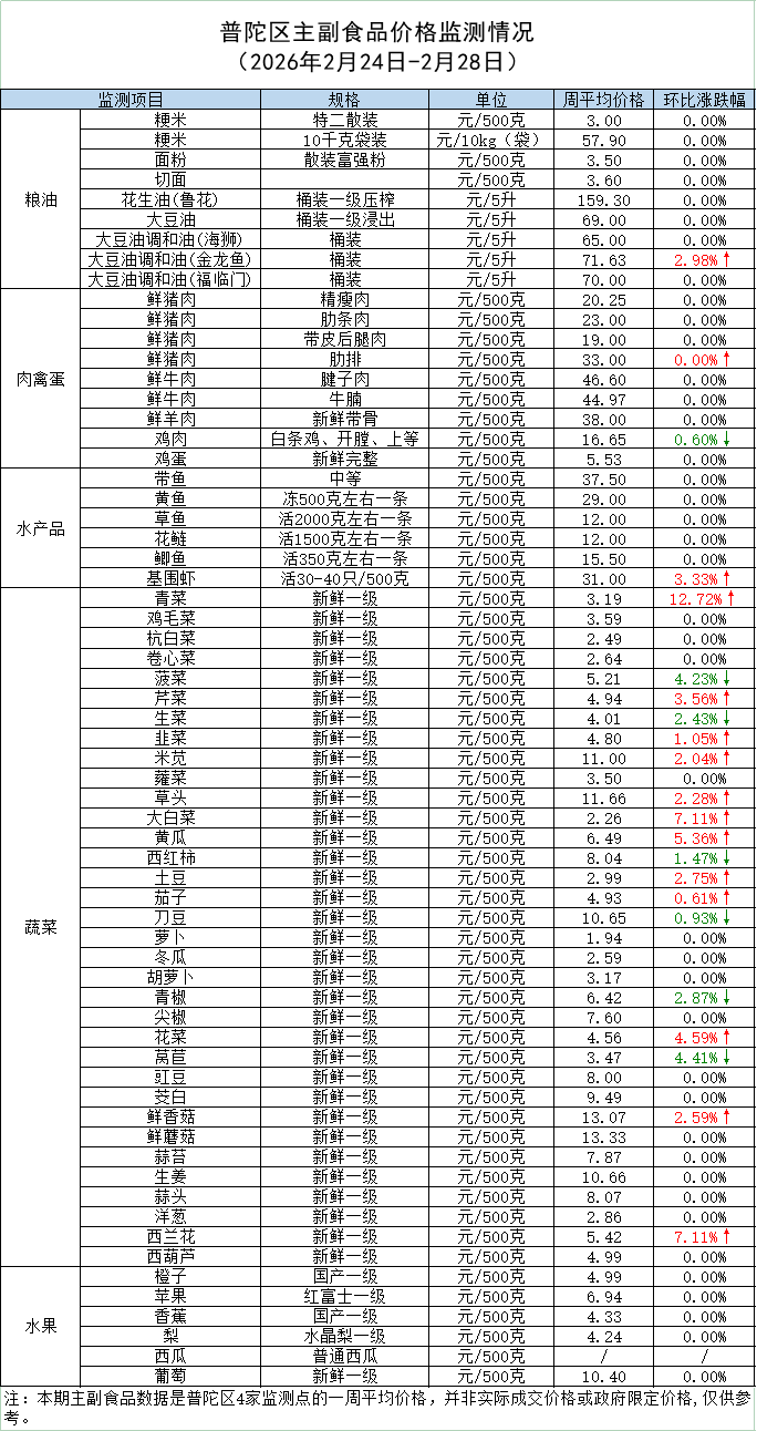 普陀区主副食品价格监测情况 (2026年3月2日)